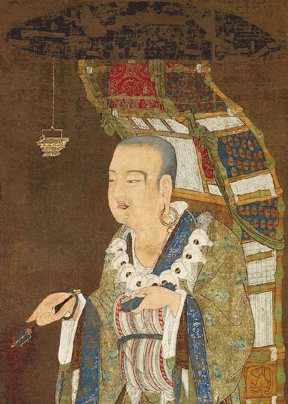 古人的“登山包”比较难见,但在著名的玄奘法师画像《玄奘负笈图》中有另一类出行背具“笈”,是盛放经卷的木箱。图中的笈的竹架延伸到了法师的头部,可以遮风挡雨,上面还挂了一盏小夜灯,方便赶路。