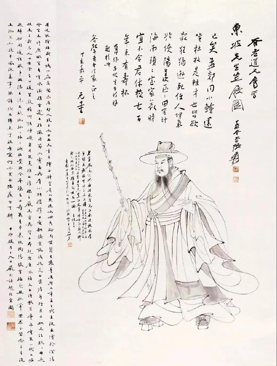 脚踏登山鞋,手拿登山杖的形象,也常见于表现苏轼的画中,“东坡笠屐”这一题材即为苏轼脚踏木屐而手拄竹杖,这竹杖也就是后来的登山杖。