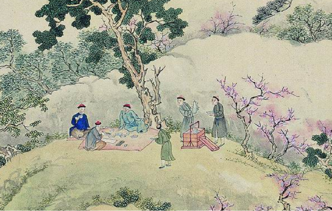 姚鼐说是和朱孝纯一起爬山,但知府出行,哪能没有随从仆役,大概在他们换上轻便的衣服,踩上合适的登山鞋,带上登山杖出发后,随从们就会带上要用的生活用品伴随他们行进了。姚鼐与朱孝纯打算在山上过夜,第二天观看日出,故而像古人旅行的常见器具如铺盖、炊具、食盒、帐篷、板凳、蓑衣、夜壶等用品,都还是需要带着的。