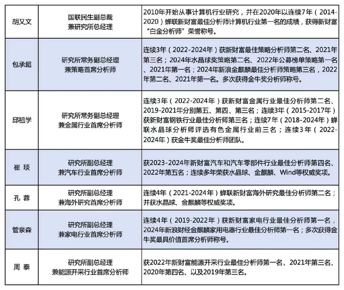 研究力是研究所的“净资产”,国联民生把这条“护城河”挖得又深又宽。国联民生证券的研究团队有全行业覆盖下的 “新财富级” 研究实力,每个赛道都标配顶尖团队,总量、周期、TMT、高端制造、消费等各大板块都有新财富团队领衔。