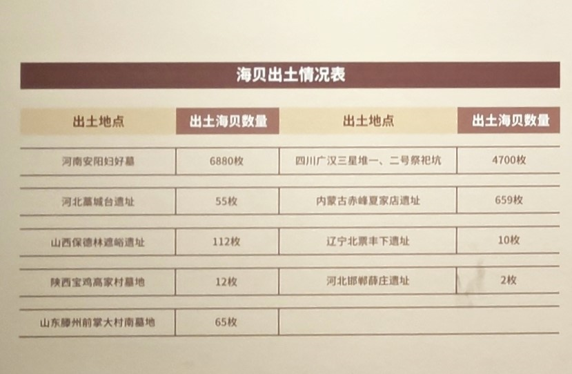 从上述各大遗址海贝出土数量看,河南安阳妇好墓最多6880枚,三星堆排名第二,出土4700枚,有学者研究三星堆海贝来自印度洋。
