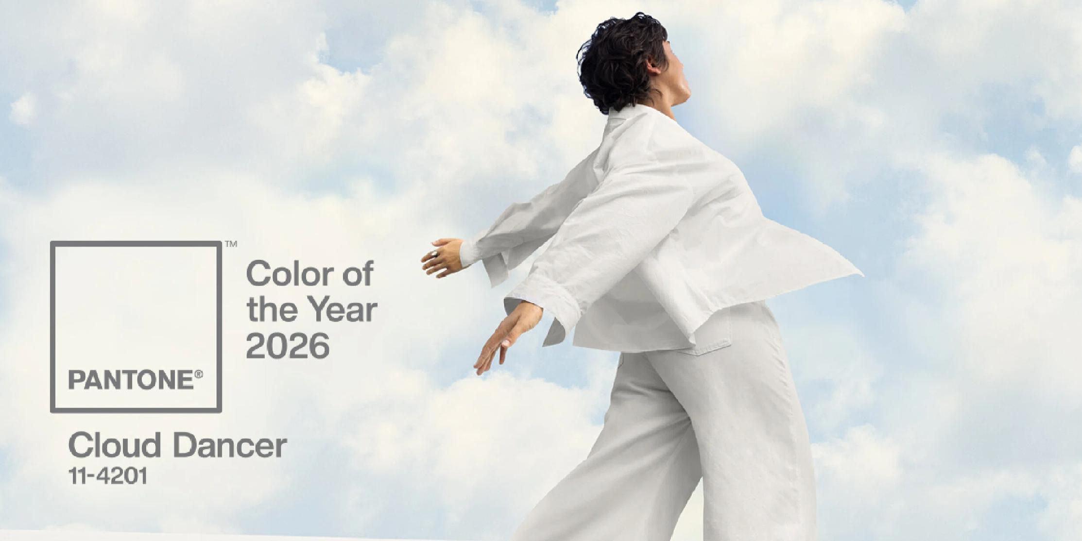 近日,国际色彩权威机构 Pantone 正式宣布 PANTONE 11-4201 Cloud Dancer「云上舞白」为 2026 年度代表色。这一柔和而内敛的白色调,被赋予为空灵、宁静且充满潜力的空白画布。