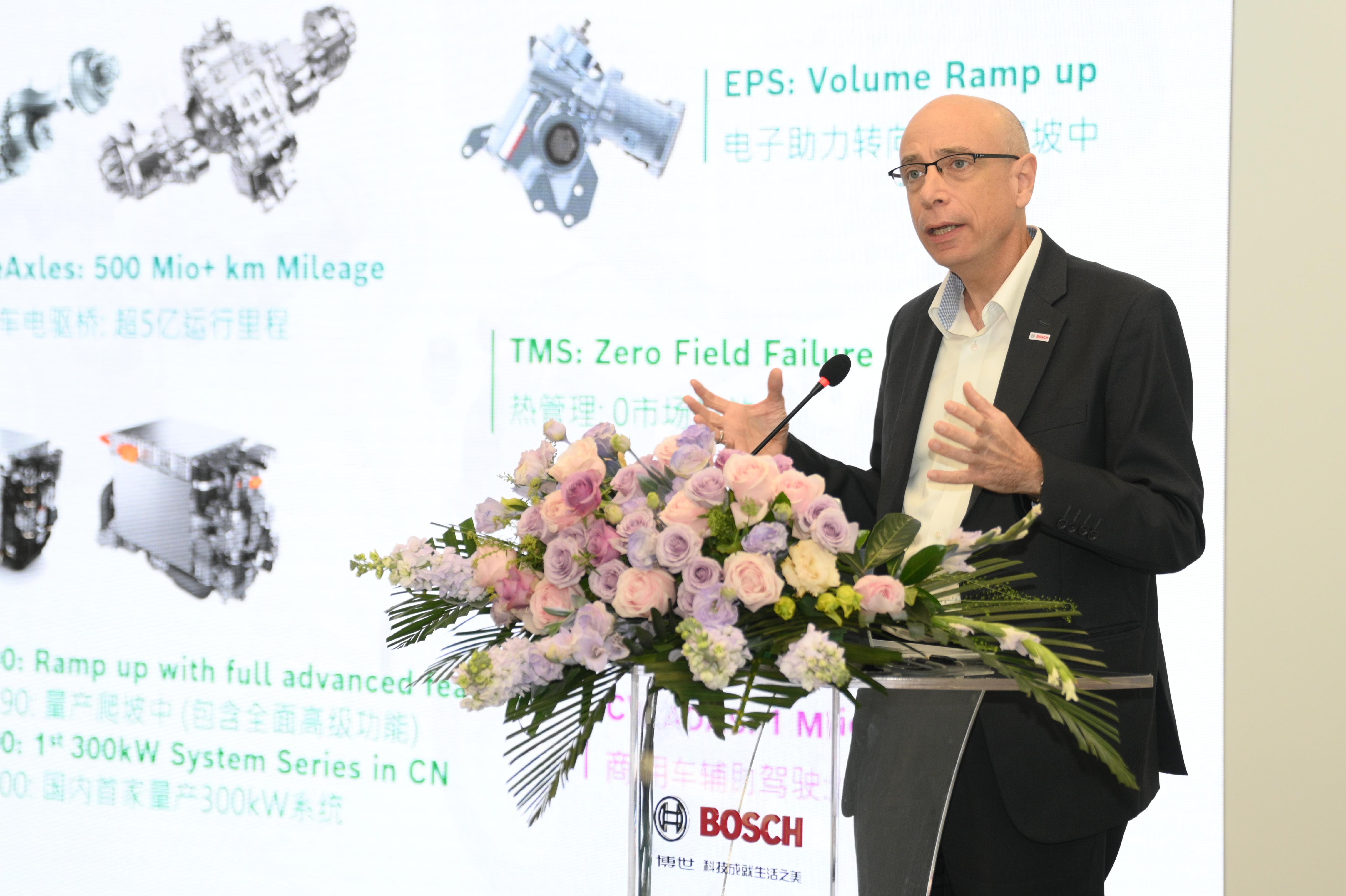 当天,博世商用车集团发布的电驱桥、电控气压制动系统(EBS)、超级重卡和超级轻卡系统平台等,即是为中国市场和中国用户带来的代表性解决方案。