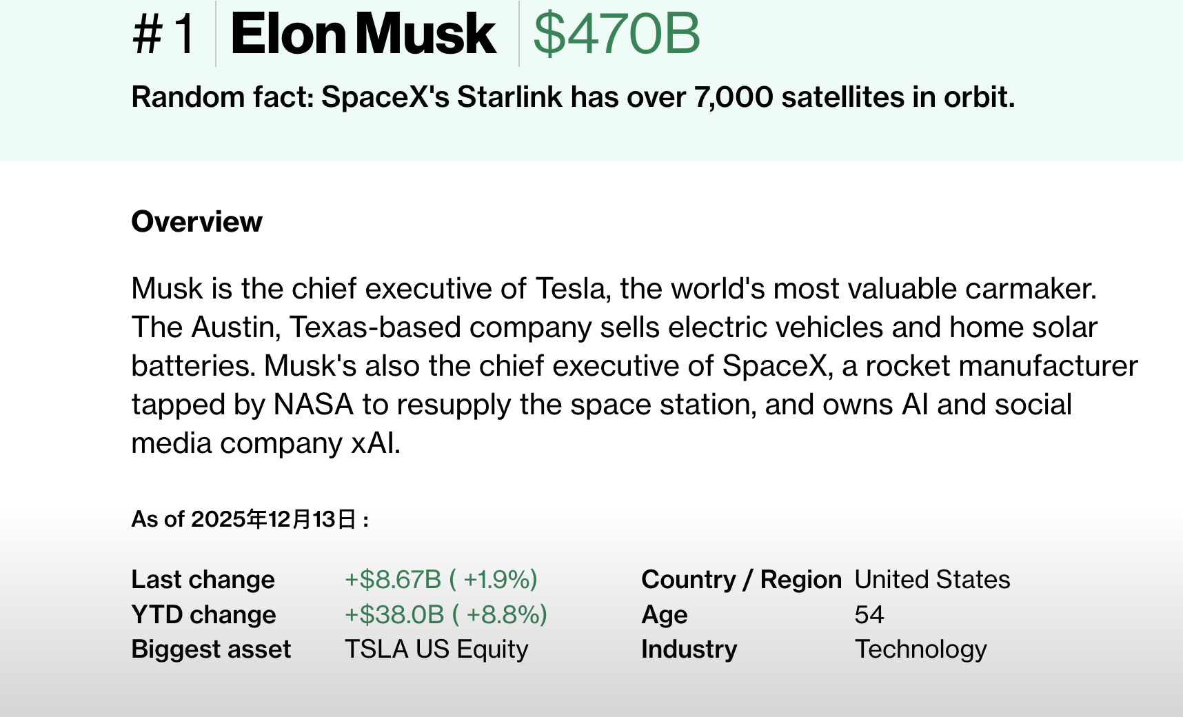 马斯克目前持有特斯拉约13%的股份,是最大个人股东。据彭博财富指数,马斯克目前身家约为4700亿美元。