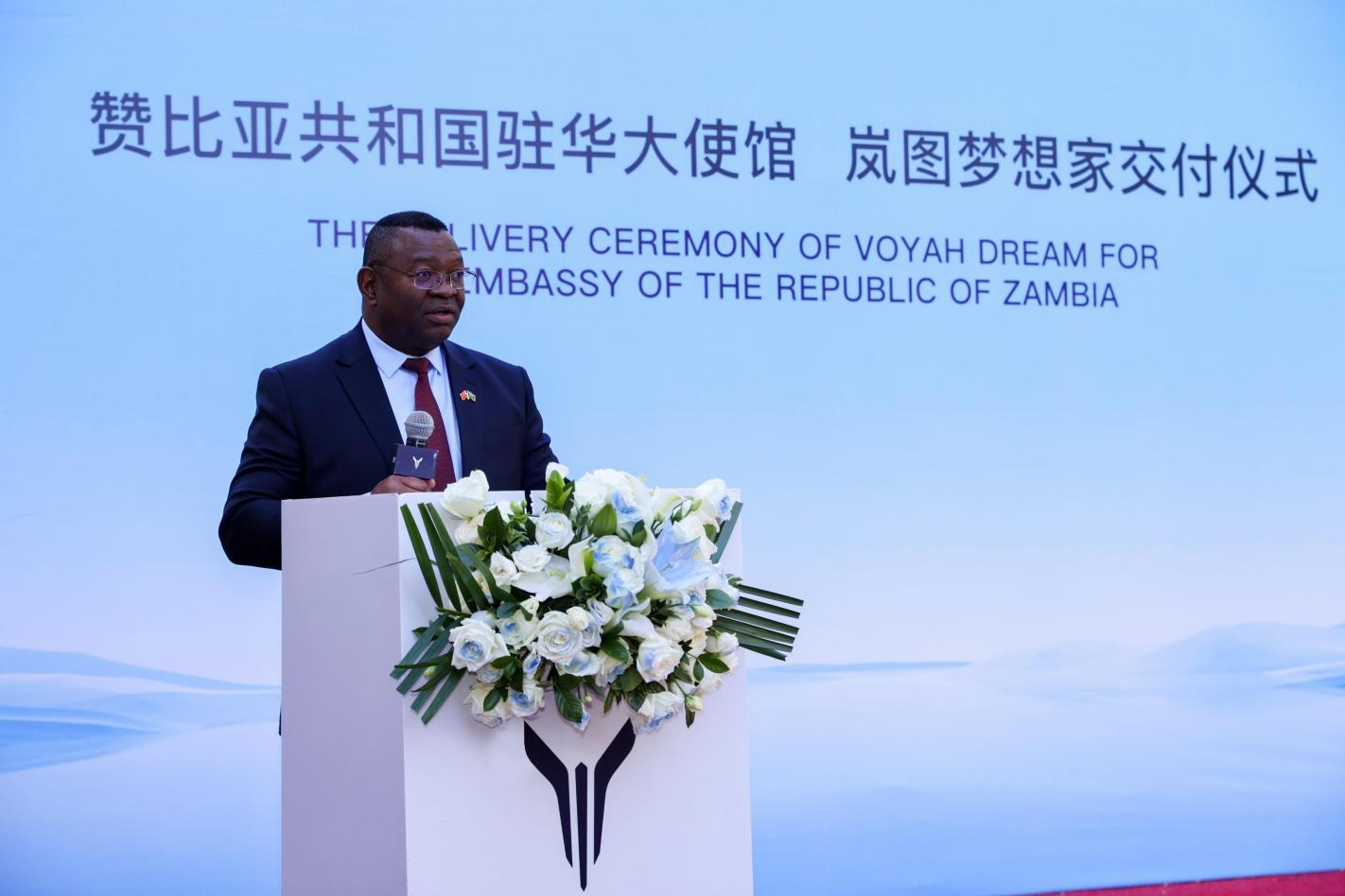 赞比亚共和国驻华大使伊文·齐乌卢先生表示:“岚图梦想家不仅成为大使馆工作用车,更重要的是,它将作为我们大使馆在北京乃至整个中国的形象与身份标志。我们决定选用岚图梦想家,体现了我们对中国在新能源汽车领域卓越进步的认可,也是对中国政府致力于推动汽车产业创新、促进全球向清洁绿色出行及可持续发展转型的肯定。岚图梦想家是我们合作的具体象征,并将伴随我们参与诸多重要活动,继续增进两国之间的相互理解与合作。”
