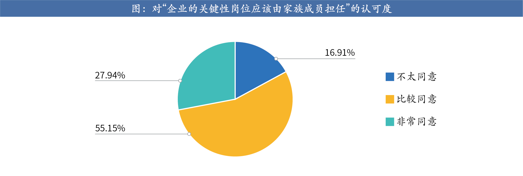 家族涉入“根植”于受访者思想中:59.56%的受访者认为其有义务为家族成员提供就业机会,83.09%的受访者认为企业的关键岗位应该有家族成员来担任。