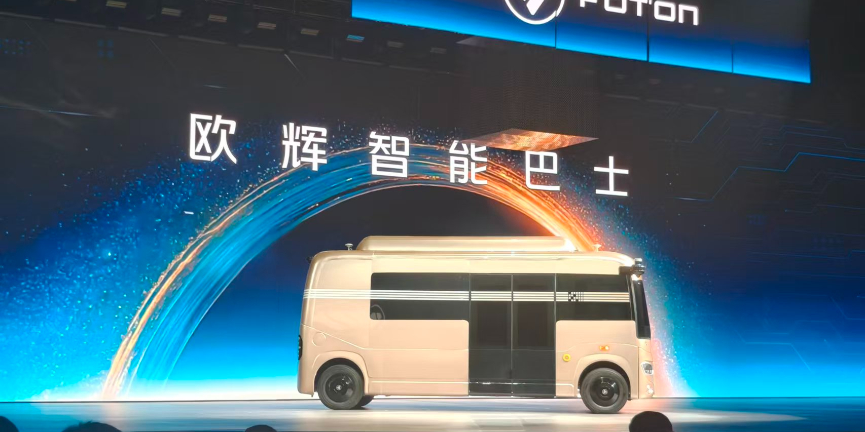 福田汽车欧辉新能源客车事业部总裁韩冬发布了欧辉智能巴士,该车针对封闭园区与公开道路实现差异化适配,重构智能出行体验。设计上,采用“四轮四角”布局并创新性取消驾驶区,重构车内乘坐空间。