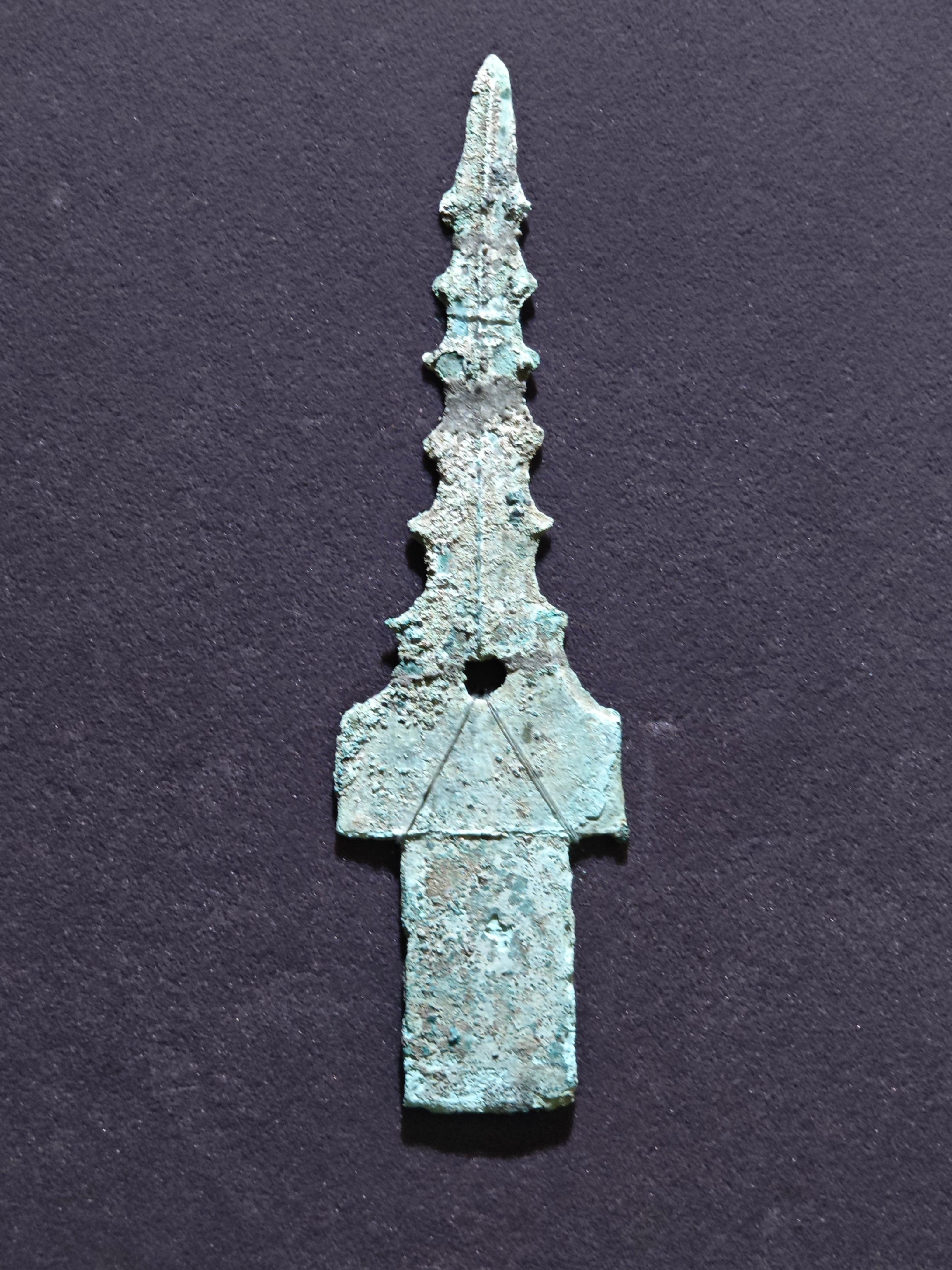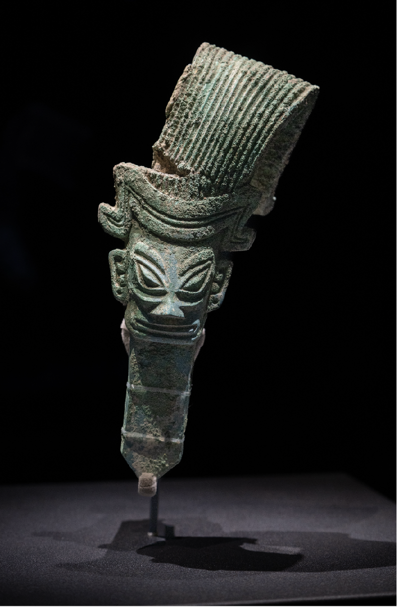 目前,三星堆遗址中尚未发掘出实用兵器,而是象征性铜兵器,比如作为仪仗的戈、佩戴在人身上的青铜带鞘双剑形器。因此,有观点认为,三星堆先民在和平的乐土上,人神共舞。