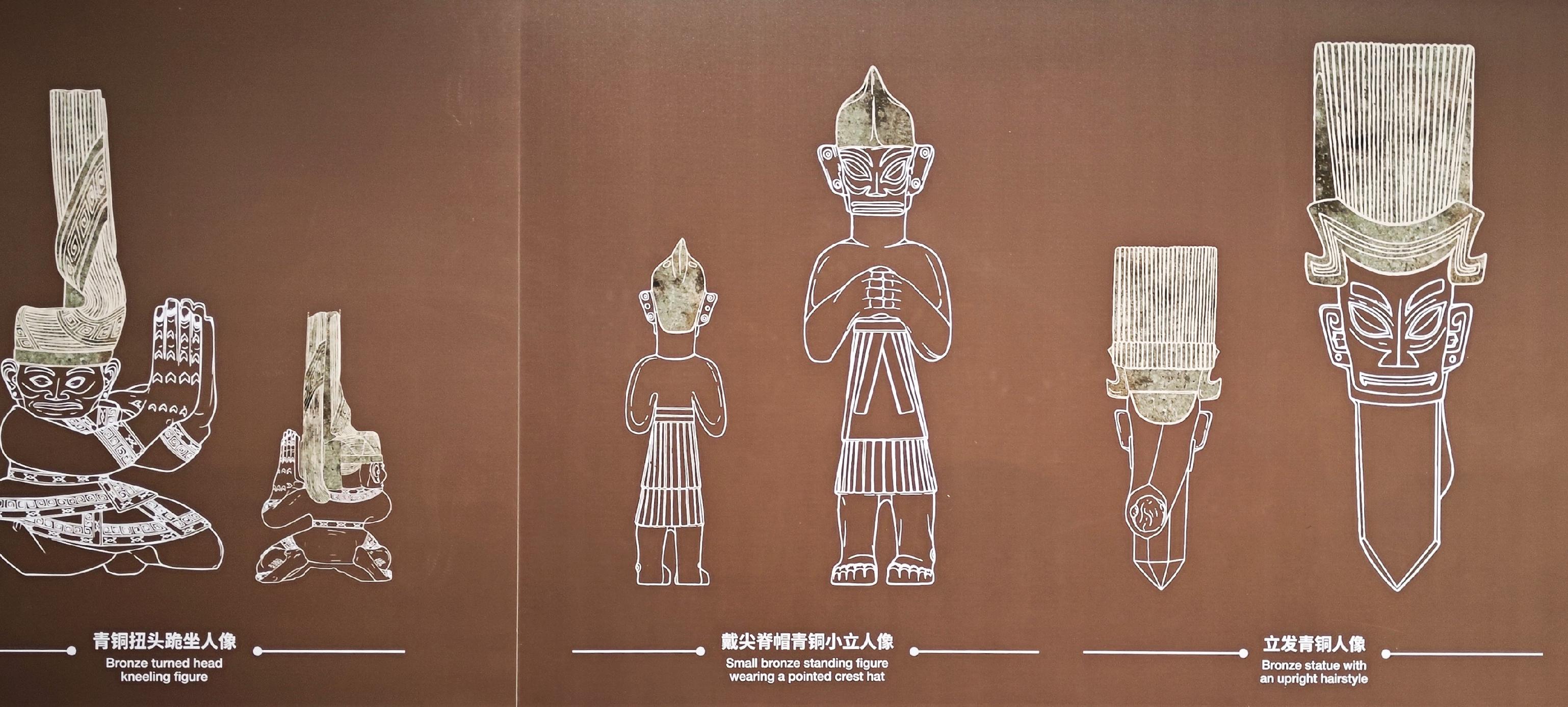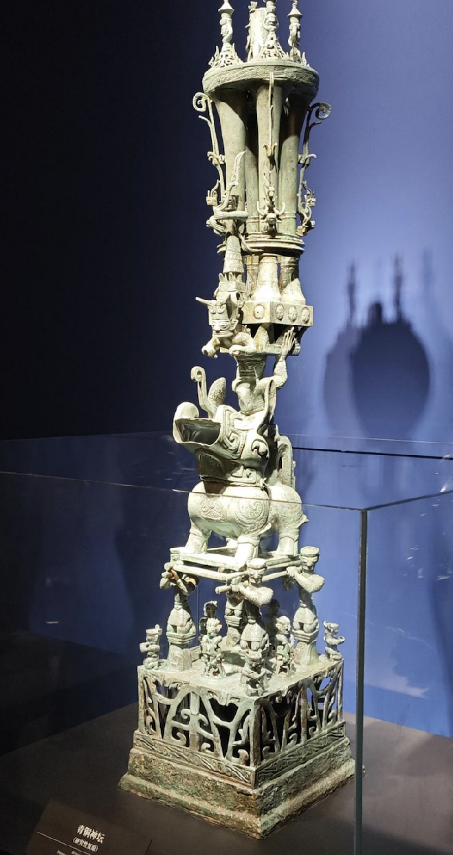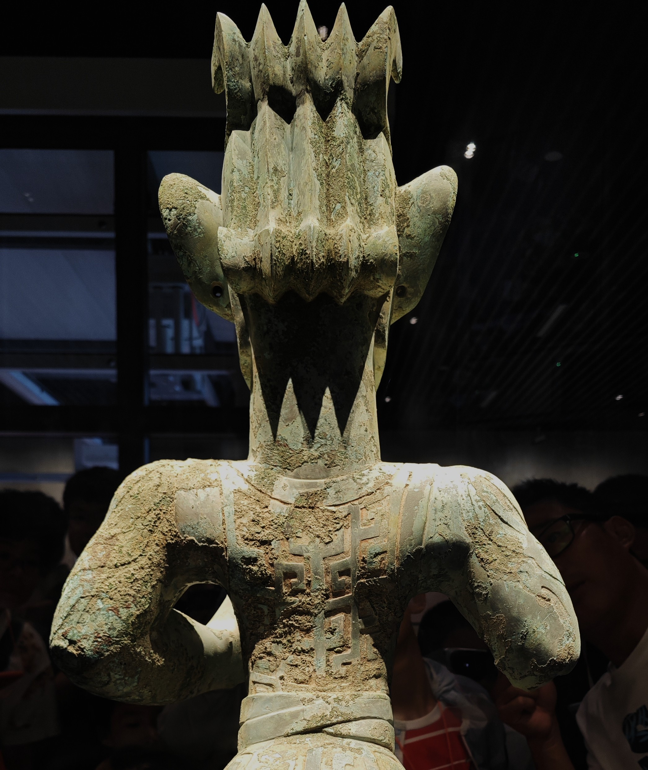 这里有“明星”文物——高1米7的青铜大立人像,也有“人口密度最高”的青铜大神坛,雕刻人数多达13个。