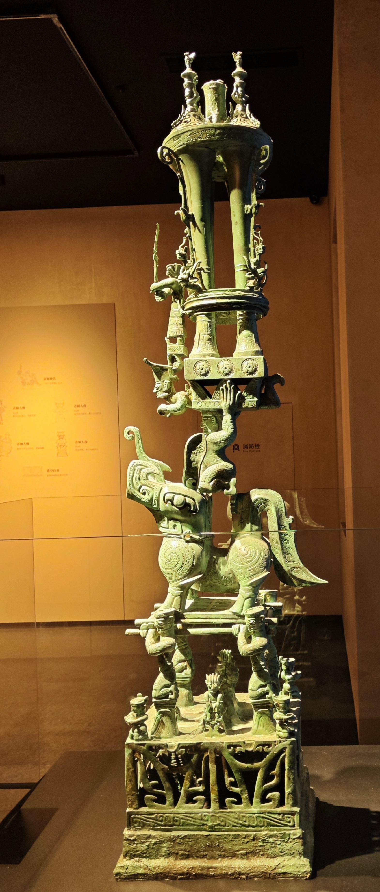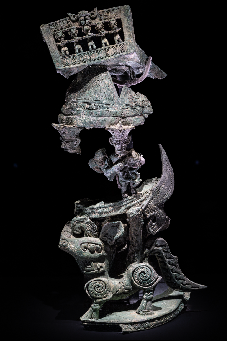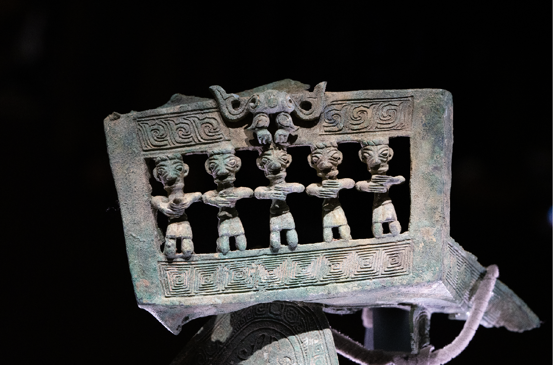 这里有“明星”文物——高1米7的青铜大立人像,也有“人口密度最高”的青铜大神坛,雕刻人数多达13个。