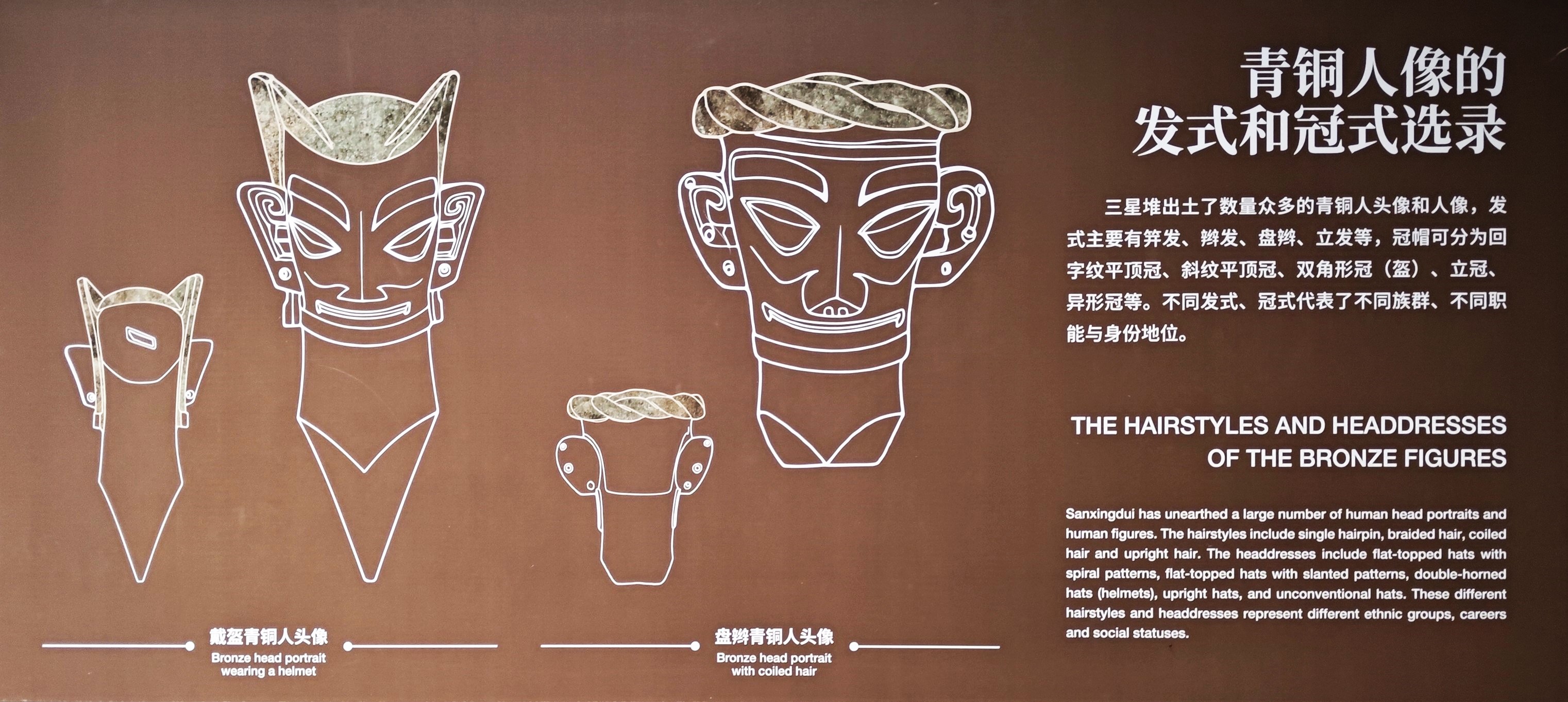 他的论据是,“青铜人头像”有复杂的式样与组合关系。其中,“平顶冠独辫式人头像”共计47件,约占全部人头像(57件)的82.5%,若他们是“世俗集团”,应为主要统治者。其他10件占17.5%的“青铜人头像”,不仅大小不一,而且冠带和发型也是多种多样的,“不可能再构成一个强大统一而又与‘世俗集团’对立的‘僧侣集团’。”