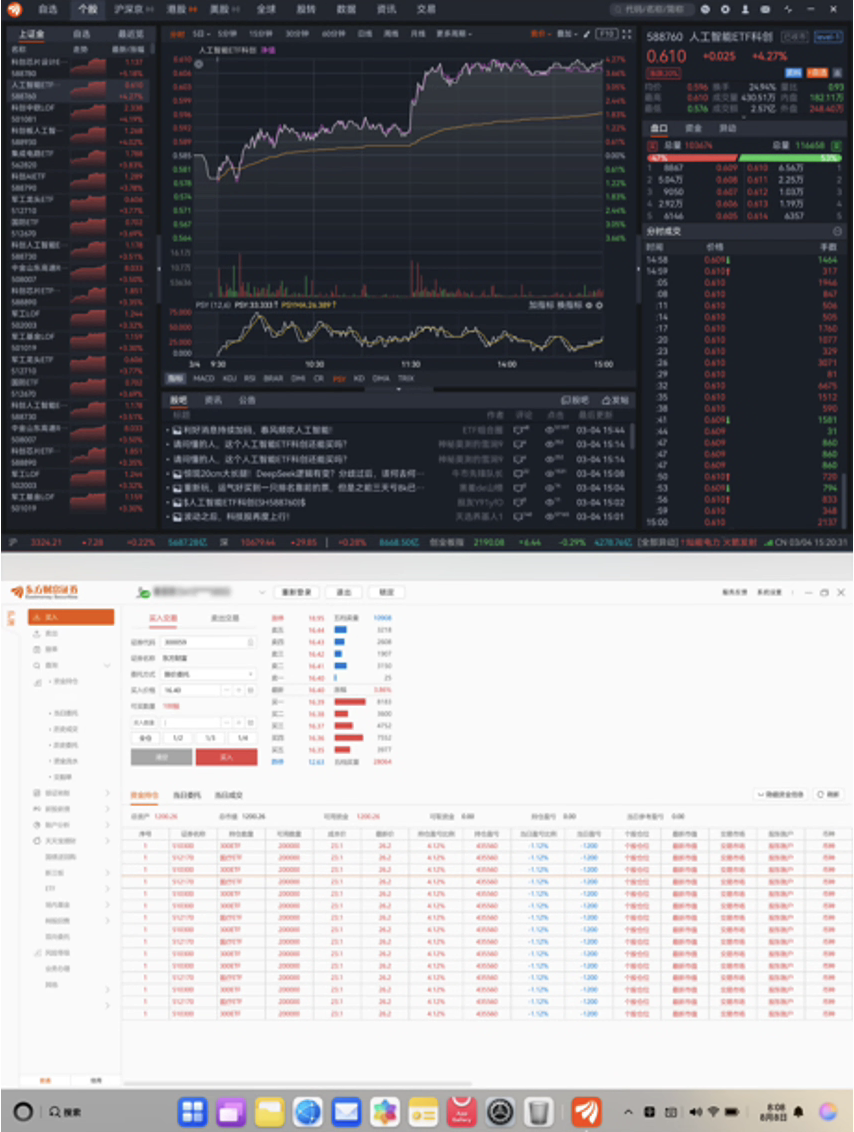 金融场景深度适配:双屏看盘交易一体化