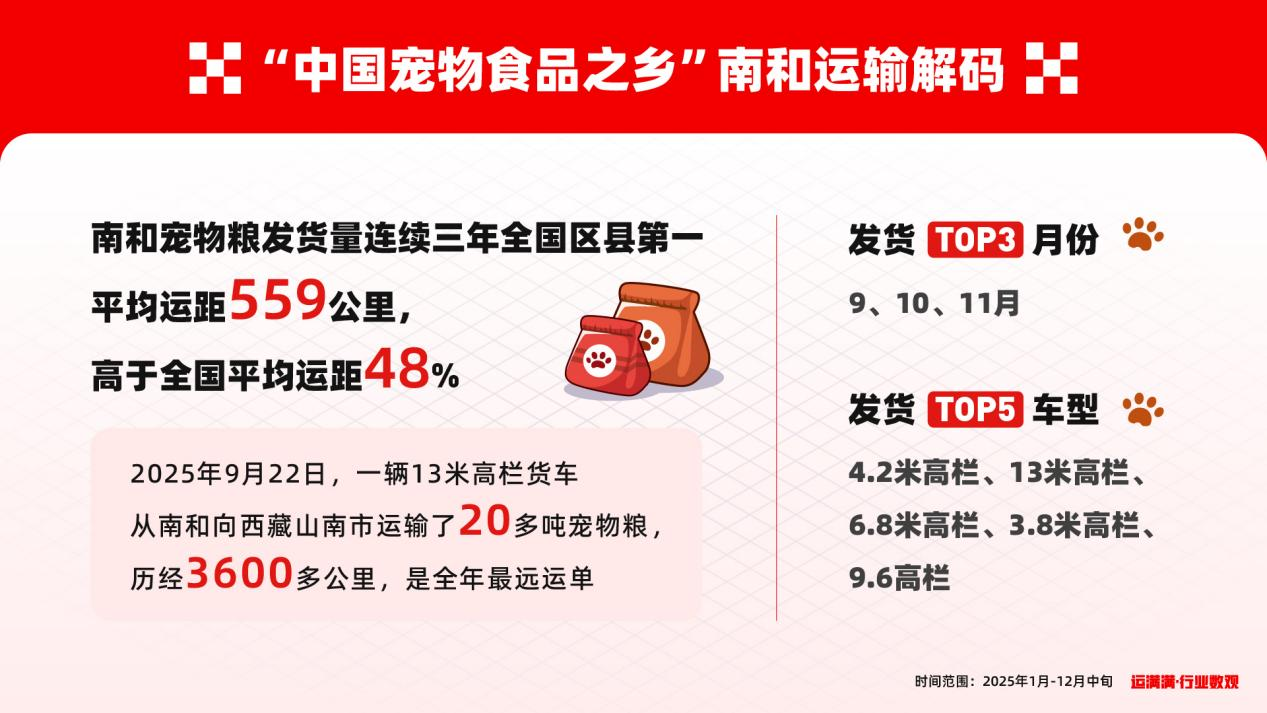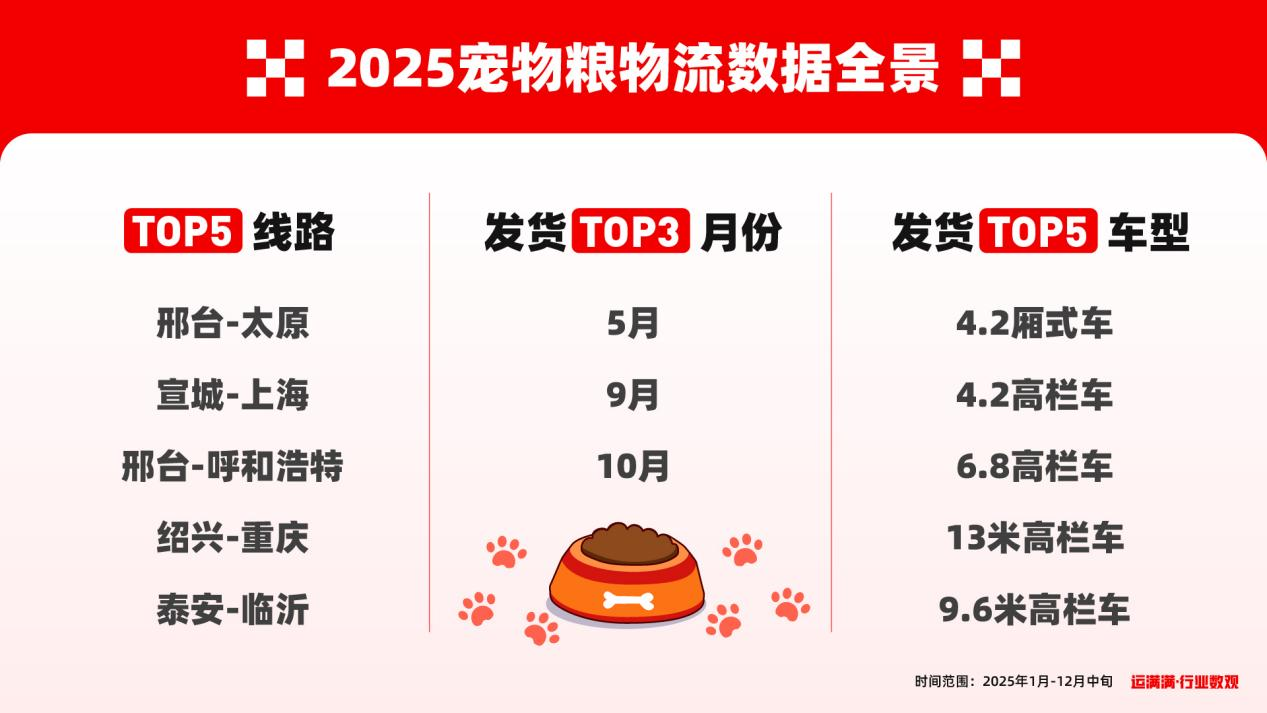 宠物在家安心干饭,背后是一张不断加速、也不断精细化的物流网络。运满满也将持续以行业数观为窗口,和产业一起把这条“看不见的链路”看得更清楚、跑得更高效。