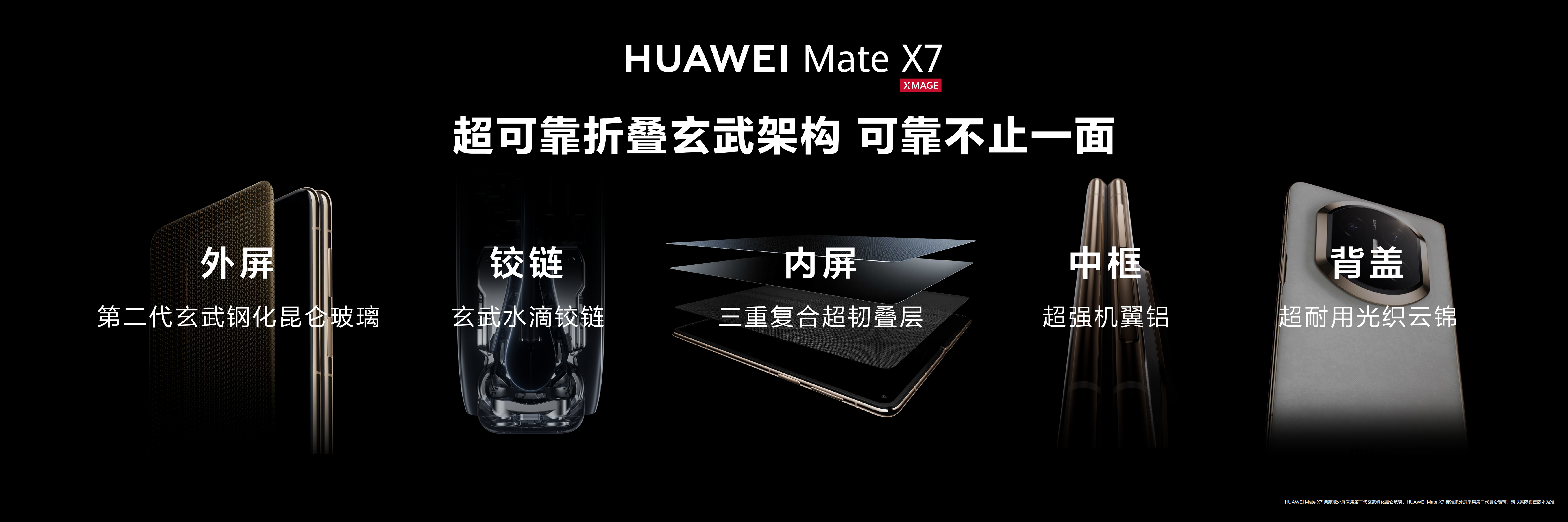 为了支撑轻薄机身,华为Mate X7引入了超可靠折叠玄武架构,将机身从内到外实现革命性突破,拉高可靠性标准。
