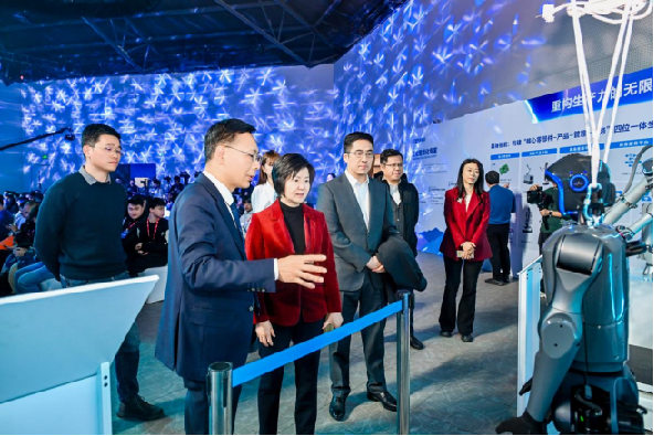 上海市嘉定区委常委、常务副区长 陆祖芳出席发布会并与具身智能机器人互动