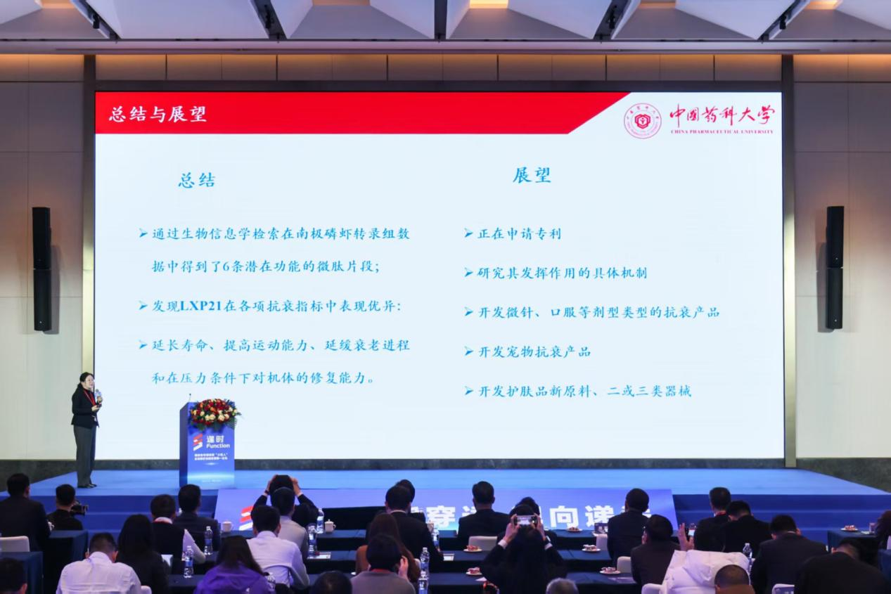 在本次研讨会现场,中国药科大学教授徐寒梅披露,通过进行南极磷虾基因组和转录组分析,获得6条具有抗肿瘤和抗衰活性的活性多肽,其中1条多肽对多种肿瘤具有显著抑制作用,高浓度下与紫杉醇活性相当;4条多肽明显延长线虫寿命,最长延长线虫寿命6天,相当于人的寿命24年;挪威科学与文学院院士、挪威奥斯陆大学教授Evandro Fei Fang证实,磷虾油可以显著延长正常野生型线虫的寿命,并可显著改善α-突触核蛋白过表达导致的神经退行性疾病,如阿尔茨海默病和帕金森病;德国杜塞尔多夫大学Nicole Teusch教授、中国药科大学姜雷教授、中国海洋大学姜帅教授、青岛大学孙勇教授围绕磷虾磷脂药用辅料质量研究,以及作为药物递送载体用于核酸药物、天然药物高端制剂的应用研究进行了分享,一致认为磷虾磷脂在高端制剂开发中具有巨大的应用潜力,也进一步证明逢时科技“向海问药”的探索具备前瞻性。