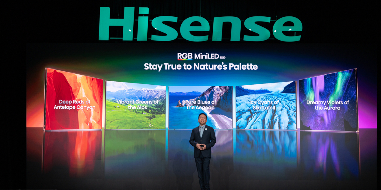 为了打破传统Mini LED和OLED的色彩、能耗及视觉舒适局限,进一步提升大屏时代显示设备的用户体验,海信一年前开创并全球最先量产了RGB-Mini LED电视,这一创新技术随着全球TOP5电视品牌悉数布局,迅速成为全球高端电视的趋势热词。“RGB与Mini LED的结合,是一场颠覆性的变革。”海信视像科技总裁李炜在今年CES的展前发布会上表示,为了还原那份无限趋近于肉眼所见的极致真实,全新一代RGB-Mini LED技术带来了三大进化。