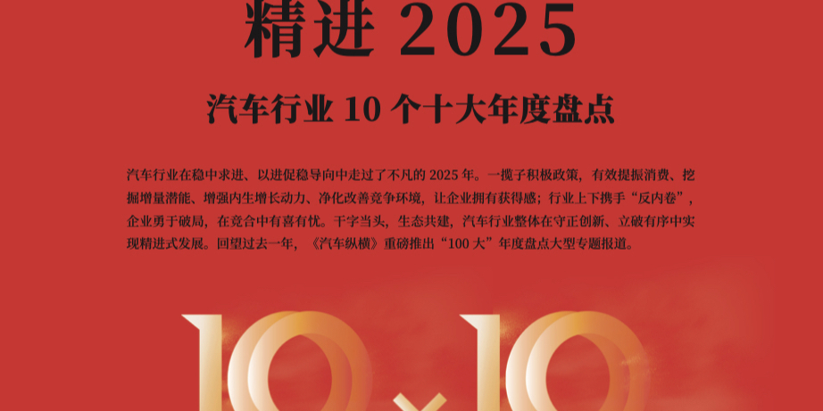 鉴往知今,驭势前行。《汽车纵横》重磅推出“封面故事”《精进2025——汽车行业10个十大年度盘点》大型专题报道。这是《汽车纵横》连续第6年重磅推出汽车行业“10个十大”年度盘点。