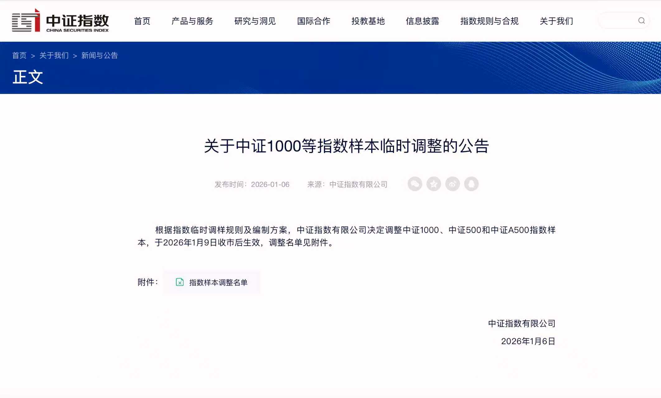 根据中证指数有限公司于1月6日公布的指数样本调整方案,深圳华大智造科技股份有限公司(以下简称“华大智造”,股票代码:688114.SH)被调入中证A500指数。该调整将于2026年1月9日收市后正式生效。作为聚焦全市场代表性上市公司的重要指数,中证A500以严格的标准筛选成份股,华大智造本次入选,预计将为公司带来资金面与品牌力的双重提升。