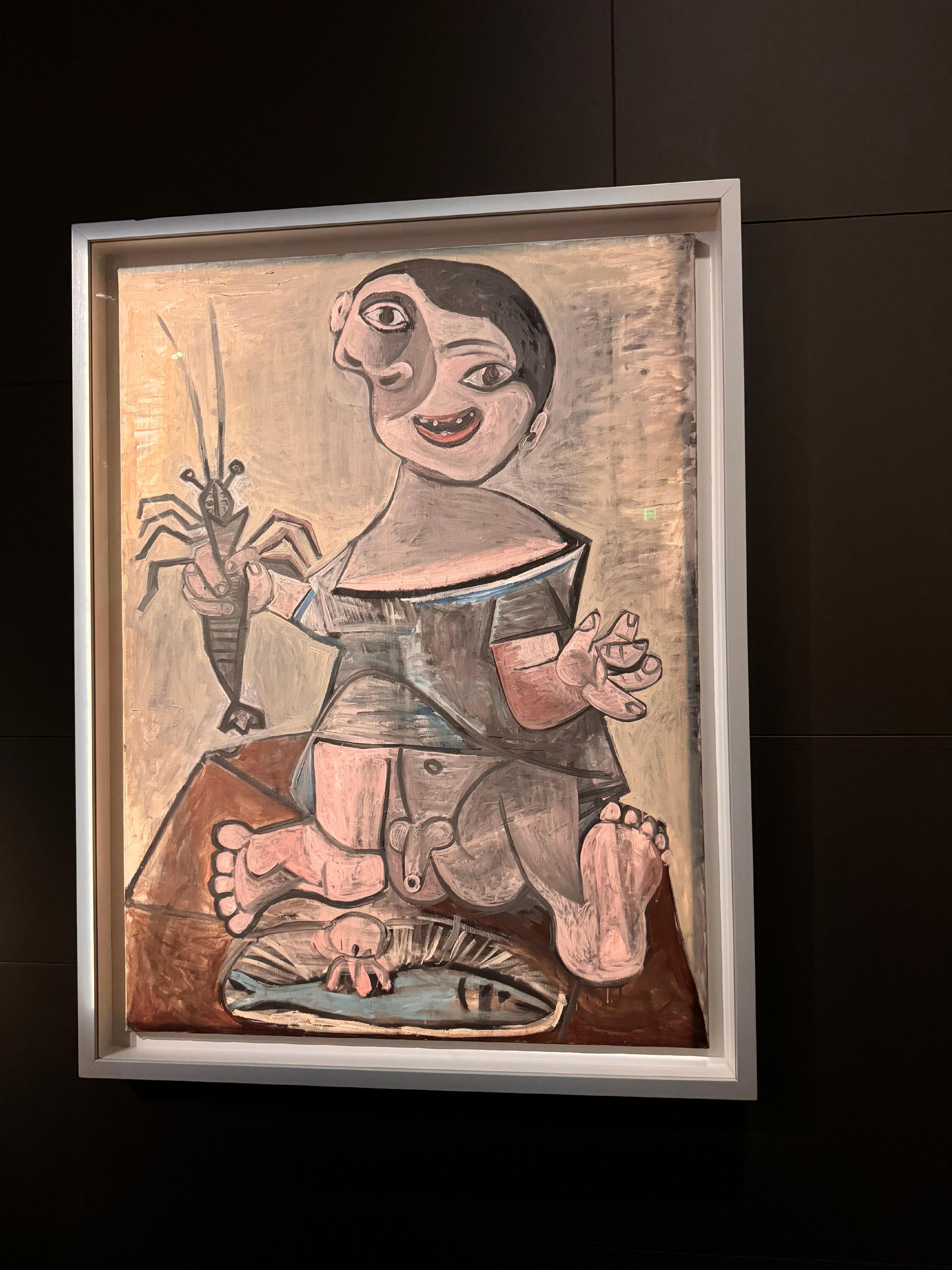 1937年,毕加索创作了巨制《格尔尼卡》,以回应西班牙内战。二战期间,毕加索并未以如此直接方式描绘战火,但是他的肖像和静物画中始终潜藏着战争的阴影,反映了那个年代的暴力与隐伏的焦虑。《男孩与龙虾》这幅画作,童稚与怪诞的并置,大地色调里充满了一种不安的预兆。