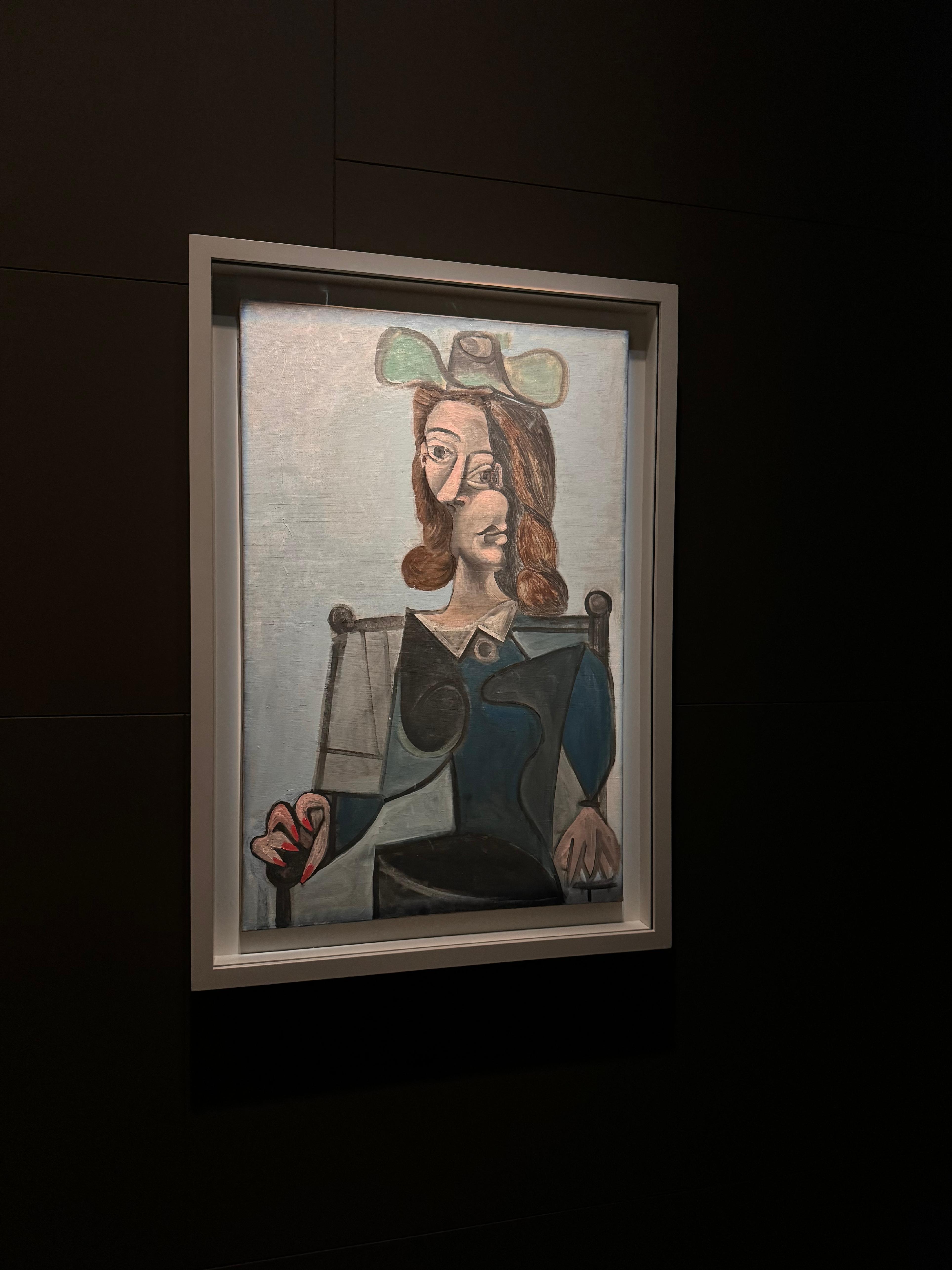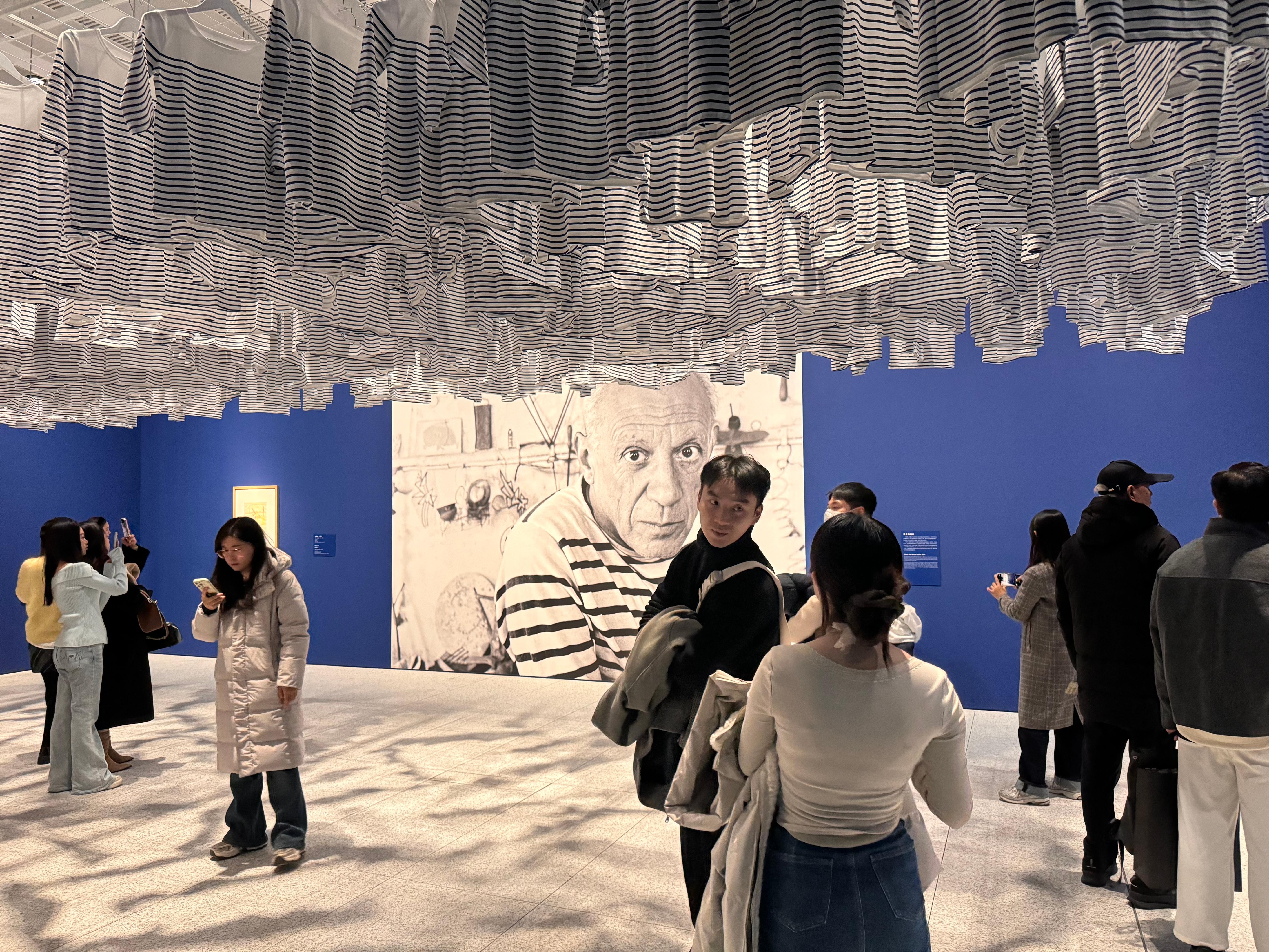 穿过那条被毕加索的涂鸦版《VOGUE》海报层层包裹的走廊,仿佛踏入一个色彩与创意的迷宫,便悄然步入首个浸染在深蓝色调中的展厅。这抹蓝色,如同毕加索笔下忧郁的灵魂,在空气中静静流淌。