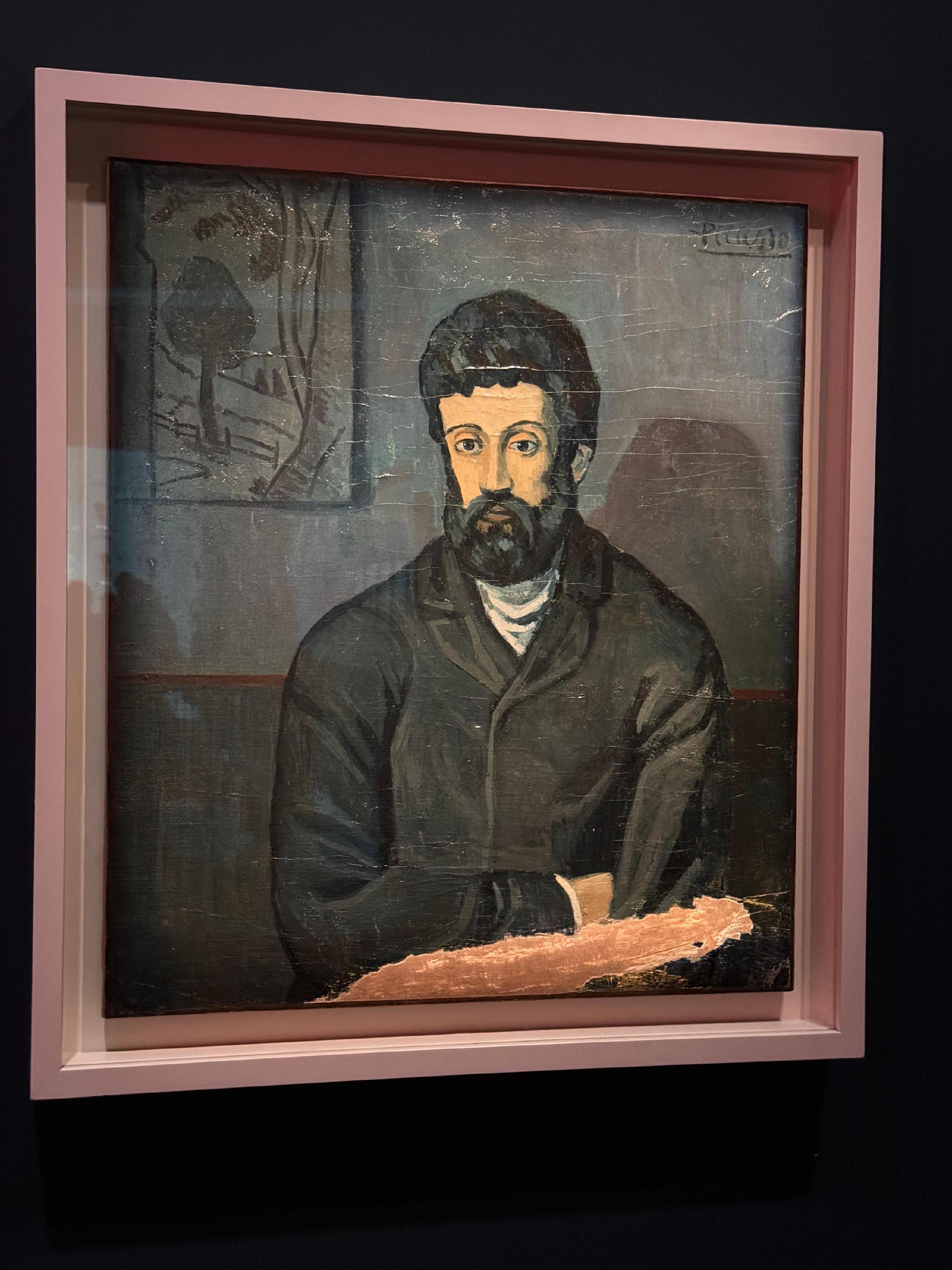 1901年,好友卡洛斯去世后,毕加索用单一的钴蓝调色板捕捉西班牙街头的灵魂,《男人肖像》诞生于此时期,那个巴塞罗那"疯子"的脸,凝固着整个时代的忧郁。那一时期,乞丐、妓女、酒鬼成为他绘画的主角。