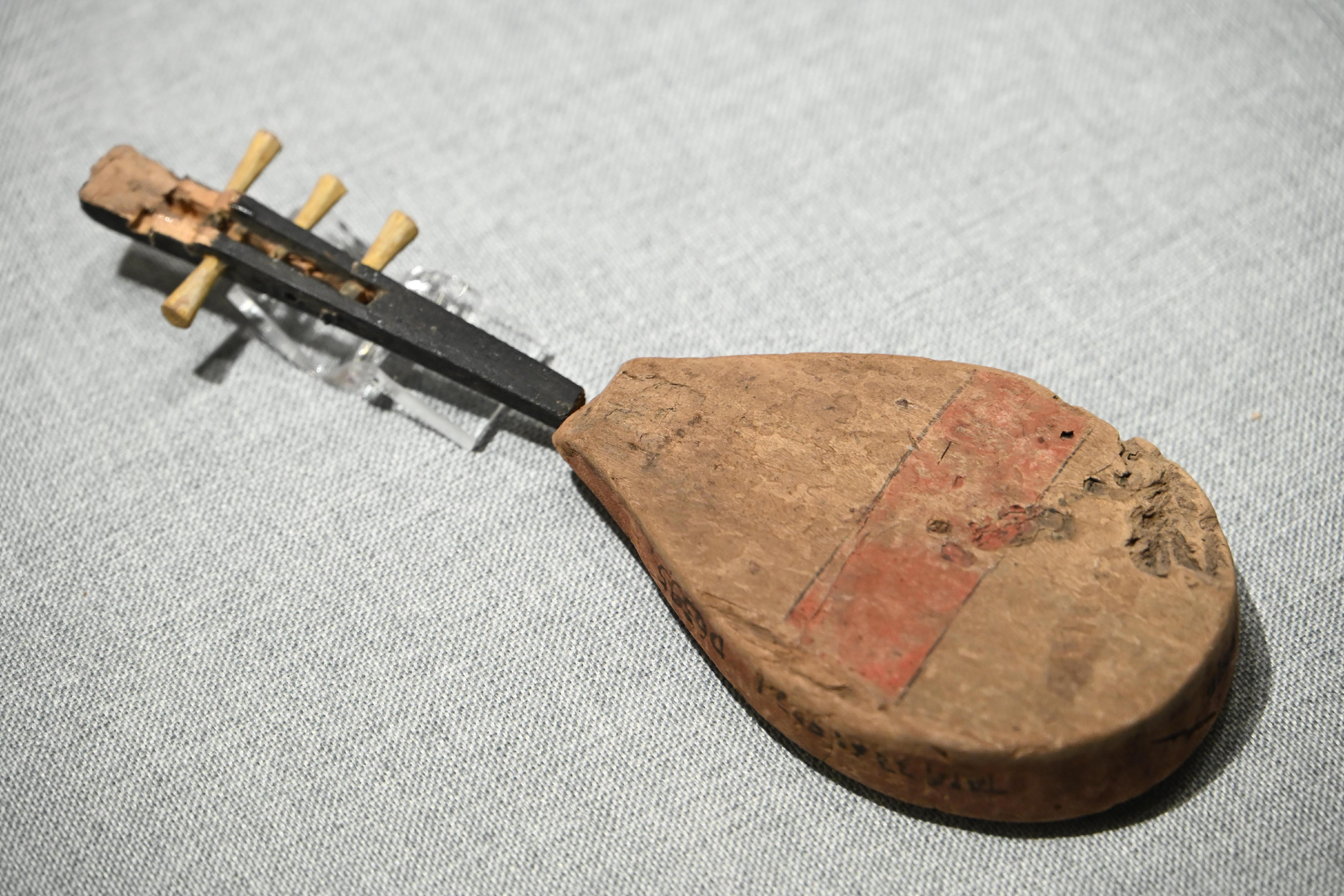 中古时期的琵琶几无传世,学者们对早期琵琶的源流、发展、形制等情况的了解主要依靠文献、壁画等材料中留存的蛛丝马迹。日本正仓院保存的唐代琵琶堪称绝世珍品,无论是审美价值还是研究价值都极为珍贵。这是2023年正仓院展出的枫苏芳染螺钿槽琵琶。