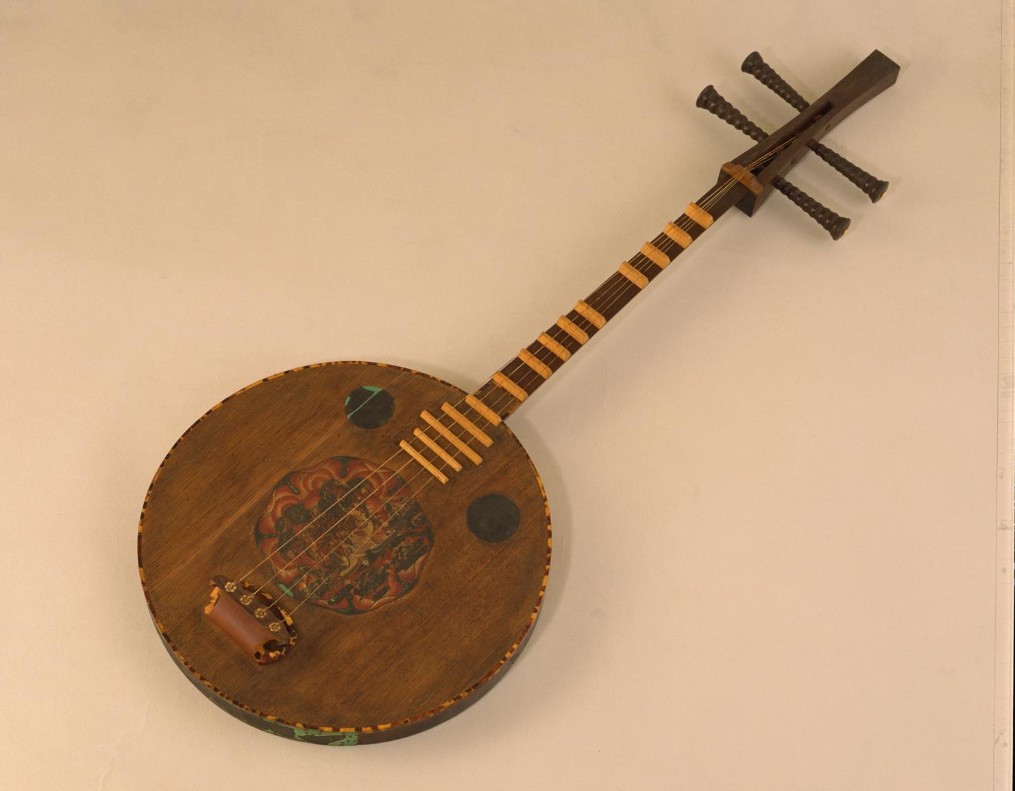 《新唐书·礼乐志》载,武则天时期蜀人蒯朗在古墓中发现一器,器身正圆似琵琶,没人能够认识。经元澹鉴定:“此阮咸所作器也。” 元澹就用木头重新制作了一把,其声高雅,乐家将这个乐器命名为“阮咸”,现简称“阮”,结构是直柄木制圆形共鸣箱,四弦十二柱,竖抱用手弹奏。这是中国历史上唯一以人名命名的乐器。日本正仓院保存的紫檀螺钿阮咸是现存最完整的唐代阮咸实物,其形制源于阮咸的改良。