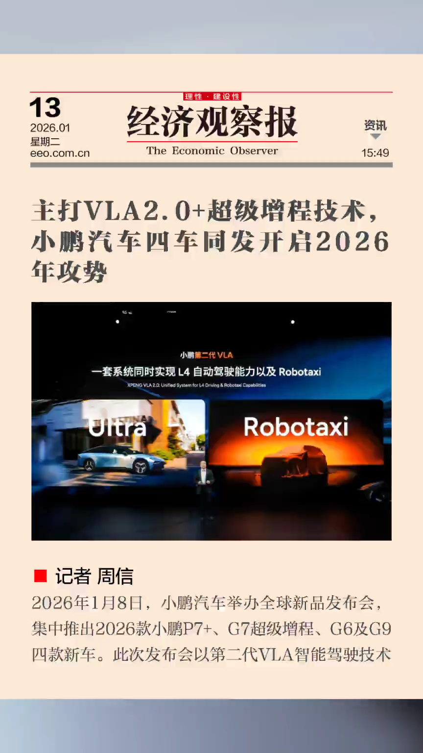 主打VLA2.0+超级增程技术,小鹏汽车四车同发开启2026年攻势