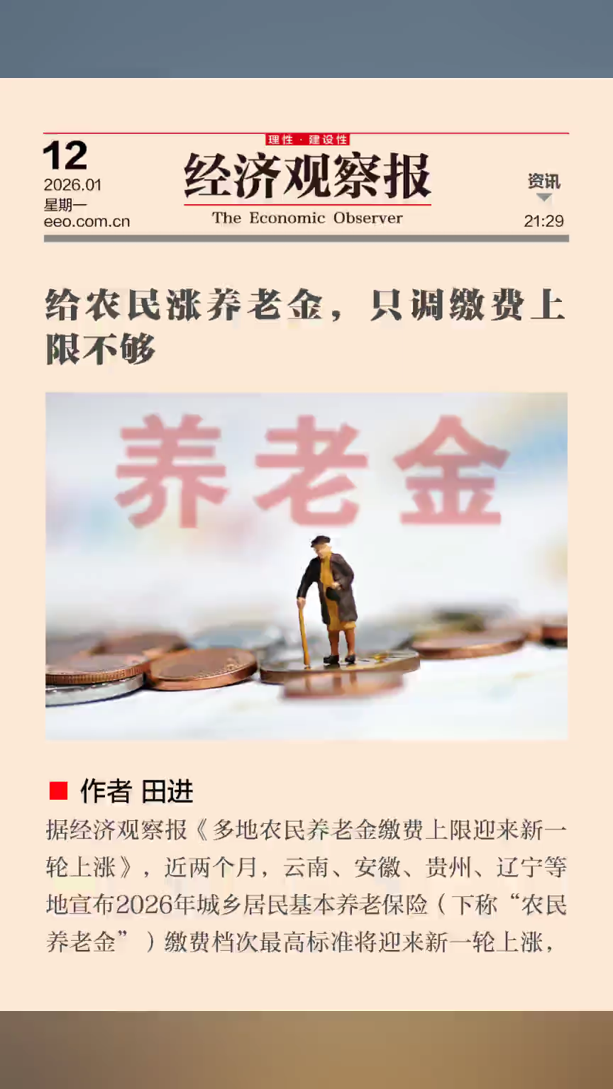 给农民涨养老金,只调缴费上限不够