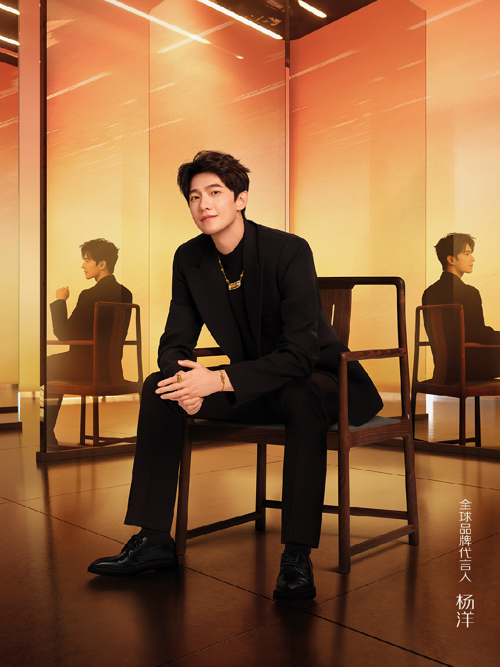 在官宣的广告大片中,杨洋化身品牌的首席传福官,与过去的自己展开对话。