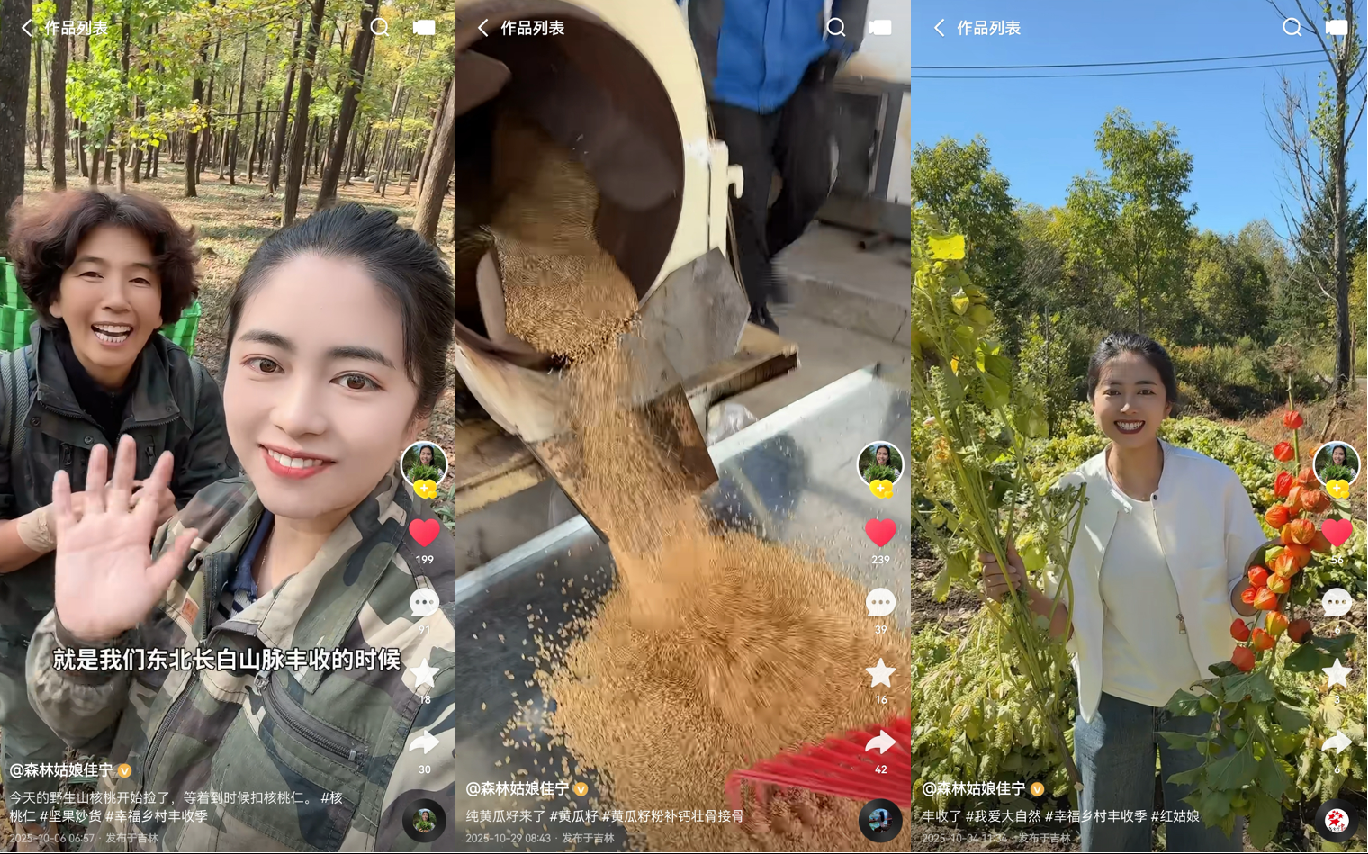 如今,“森林姑娘佳宁”的快手账号已累计售出90多万件农产品、累计销售额近四千万。而在亮眼的数字背后,是老乡们递来的一筐筐山货,和那份越过越踏实的红火日子。