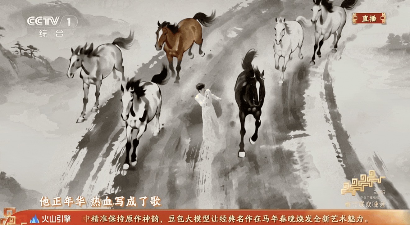 在节目《驭风歌》中,导演组要求背景中的水墨画必须动态化,画中的马匹不仅要跑起来,且数量、形态不能有任何偏差。