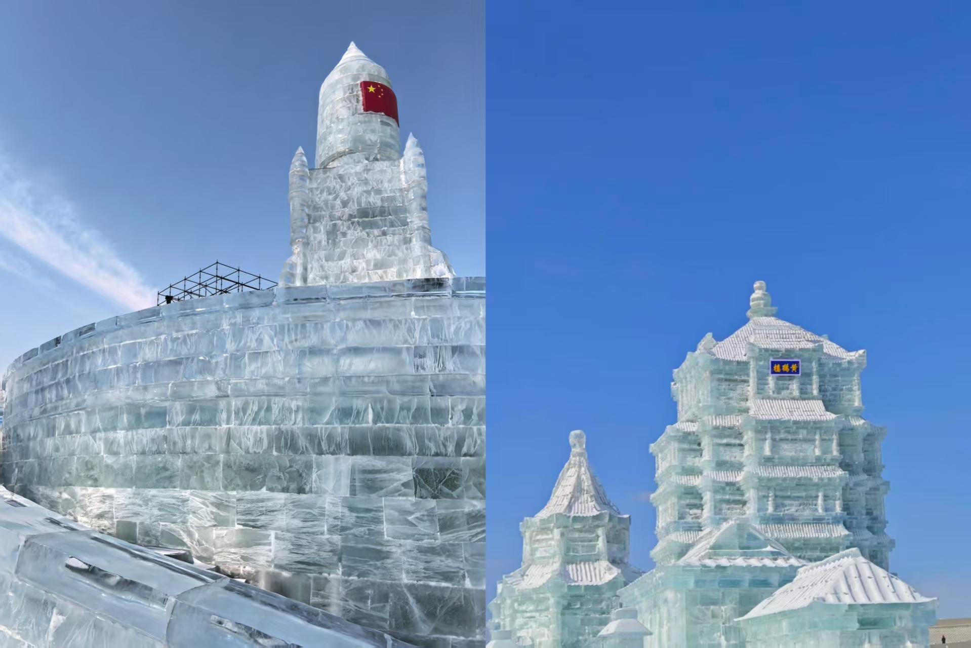 园区内,大国重器化作冰雪景观,生动展现着我国的科技力量;主宾省市区系列冰雕撷取山东岱庙、福建土楼、深圳罗湖口岸的建筑神韵,让南北风情、多元文化在冰城相遇相融;黄鹤楼冰雕更是巧夺天工,将江南名楼的雄浑雅致,凝刻于北国冰雪之间。