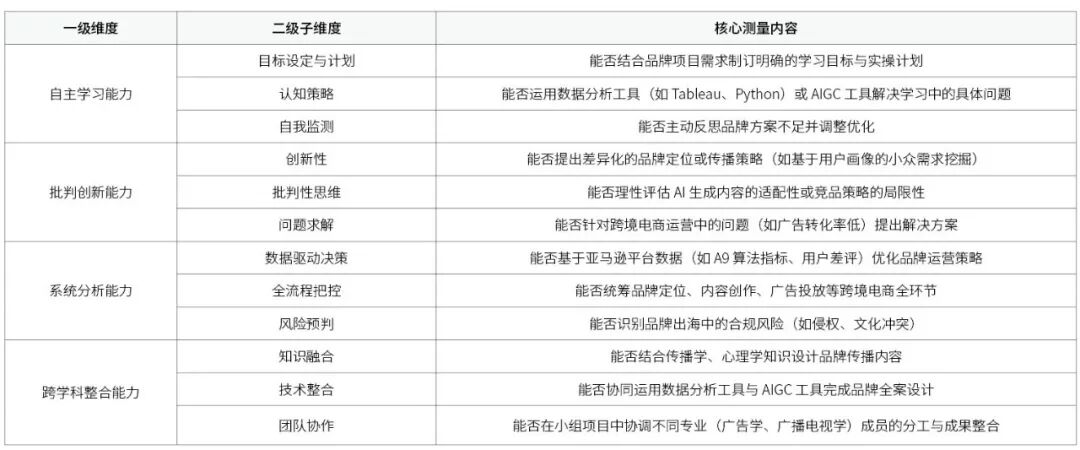 作为以工科见长的高水平研究型大学,同济大学在人才培养中着重锤炼学生的实践创新能力。但在人工智能时代,仅掌握低阶实用技能的人极易被技术取代,唯有具备高阶思维能力——能够进行系统分析、跨界整合与创造性解决复杂问题的人,才能在时代变革中站稳脚跟。因此,本研究从课程教学改革入手,主动顺应智媒时代的技术变革,树立“以学生为中心”的教学理念,通过案例教学、探究式教学、项目式教学等多种方式,结合亚马逊虚拟仿真平台,深耕核心课程建设,着力培养学生的创新实践能力与高阶思维能力,探索一条提升品牌传播人才核心竞争力的发展路径。