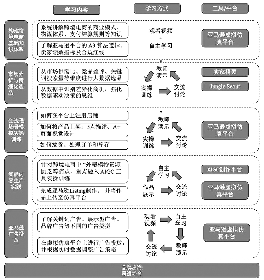本研究以教育部产学研项目提供的亚马逊跨境电商虚拟仿真平台为实训载体,增设“亚马逊平台运营”模块,通过模拟真实跨境电商全流程,培养学生的系统分析、决策、创造性思维、计算思维等综合能力。