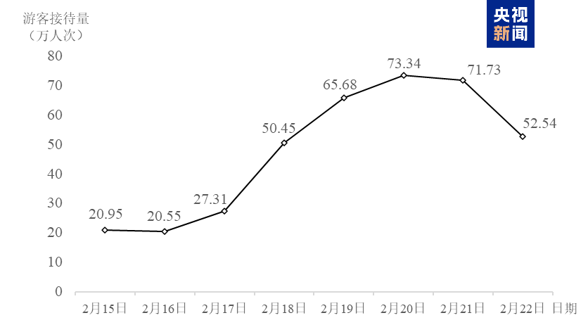 其中,假期首日(2月15日)实现接待量20.95万人次,同比2025年增长近42%,迎新春游园“开门红”;正月初一(2月17日)至初三(2月19日)客流持续翻倍,增长至65.68万人次;正月初四(2月20日)以73.34万人次创下假期游客接待量峰值,初五(2月21日)仍维持71.73万人次高位,初六(2月22日)回落至52.54万人次,但依旧保持较高水平,客流分布均衡。客流曲线平稳有序、总体节节攀升,既反映出市民游客出游热情高涨,也体现出公园景区科学调度、有序开放的保障能力。