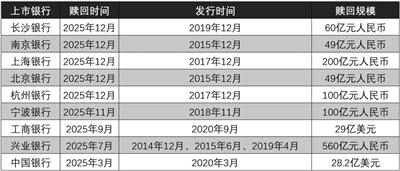 此轮银行优先股赎回潮始于2025年下半年。仅2025年12月就有5家城商行集中赎回,合计赎回规模达458亿元,创下阶段性高峰。其中,上海银行于2025年12月19日全额赎回200亿元“上银优1”,支付本金及当期股息合计208.04亿元;杭州银行于2025年12月15日赎回100亿元“杭银优1”,支付本金及当期股息104亿元;长沙银行、南京银行、北京银行分别赎回60亿元、49亿元、49亿元优先股。