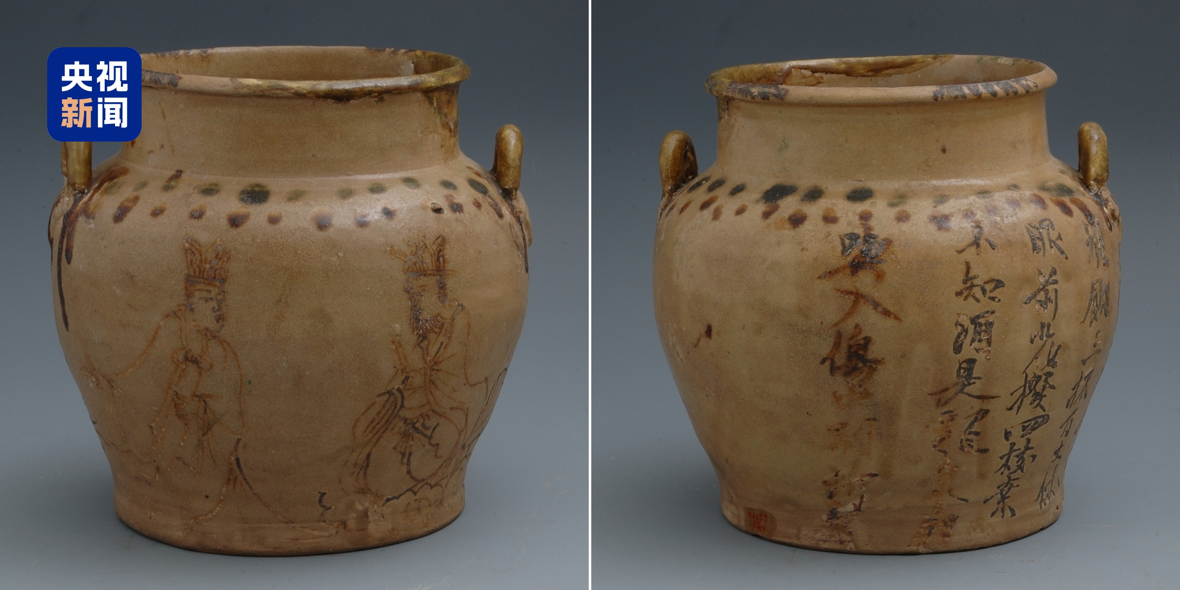 长沙窑青釉褐彩七贤人物诗文瓷罐
