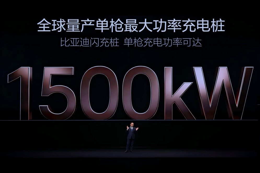 为实现第二代刀片电池的闪充速度,比亚迪还全新开发了闪充桩,单枪充电功率做到了:1500kW!是全球量产单枪最大功率充电桩!配合超级快放的储能系统,突破了电网容量限制,而且绝不会伤害电网,是对社会最友好的充电解决方案。