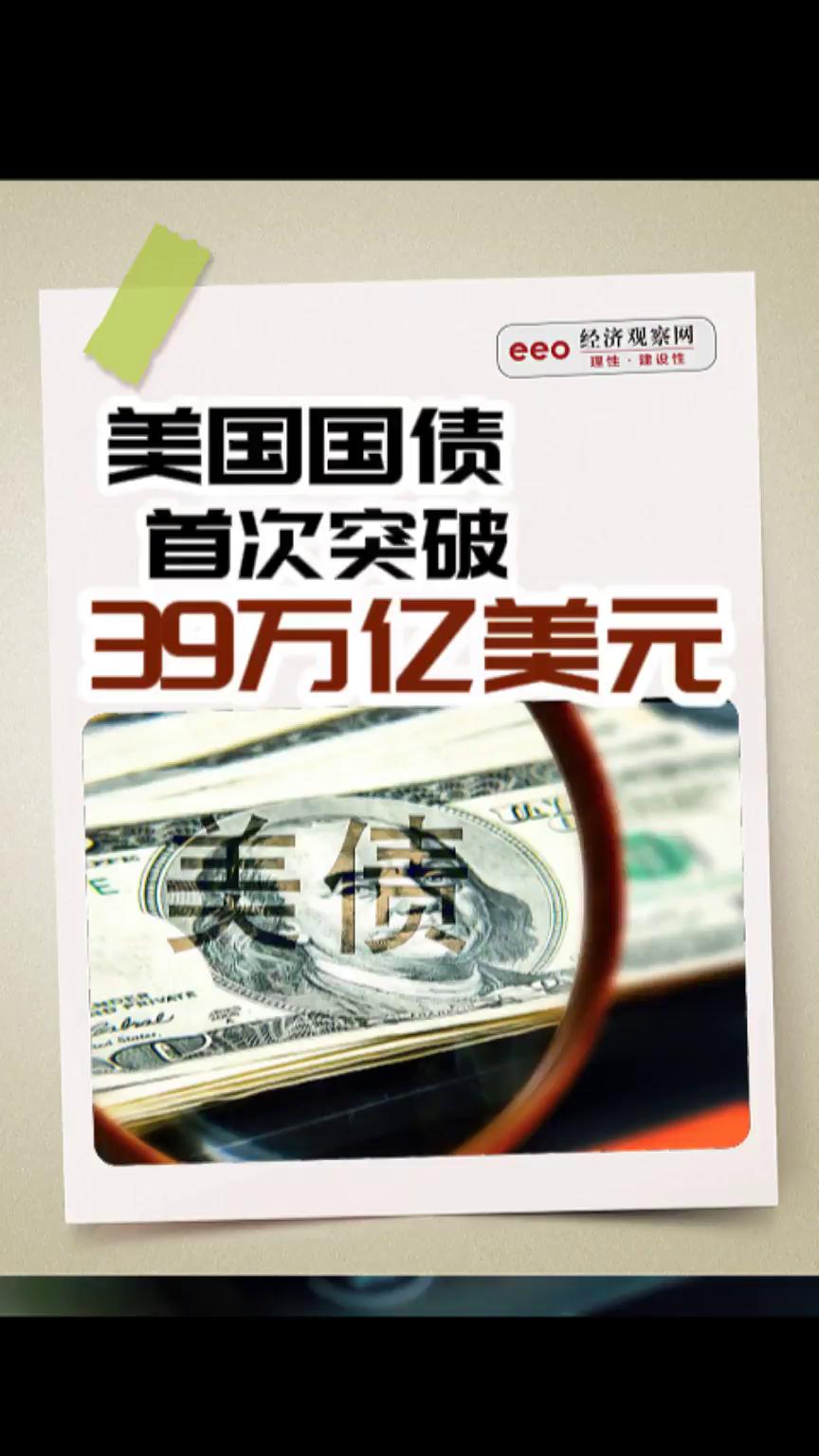 美国国债首次突破39万亿美元
