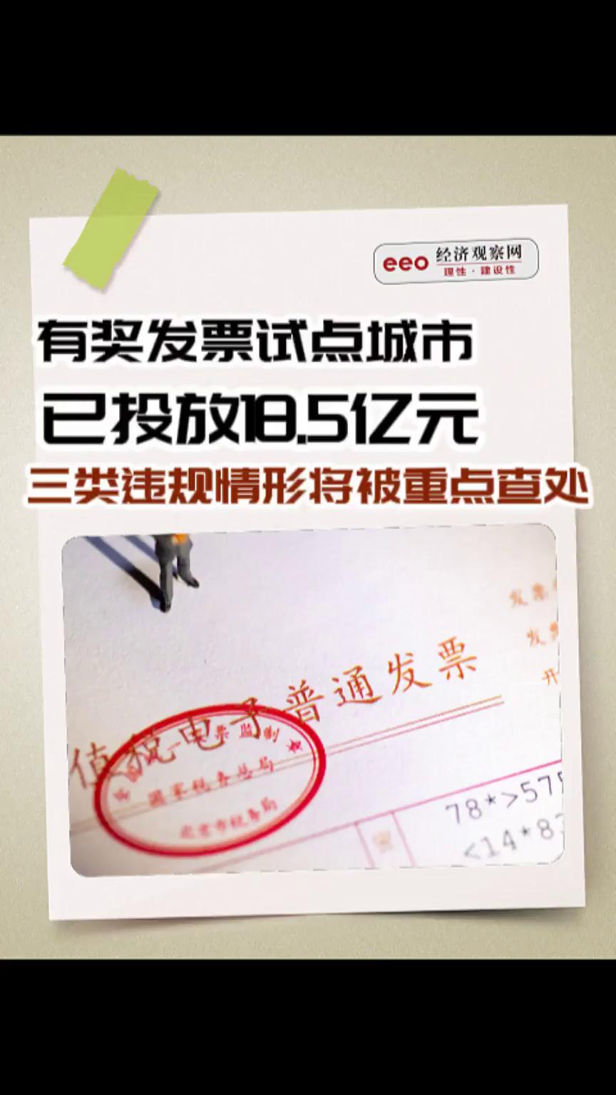 有奖发票试点城市已投放18.5亿元,三类违规情形将被重点查处
