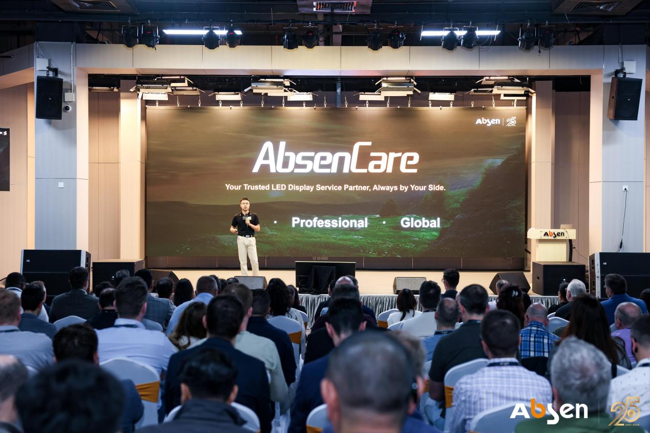 秉持“以客户为中心”,艾比森本次发布会重磅升级AbsenCare全球服务体系,以“Trusted”为核心打造“Fast・Professional・Global”三大服务价值,重新定义行业服务标准。7×24小时全球客户服务中心,在线响应10秒内触达,关键区域现场服务4小时内抵达。170+名专业工程师平均从业超8年,ACE认证项目累计为全球5400+名工程师赋能。15个一级服务中心、25个二级服务中心、1000+授权伙伴,服务网络覆盖165个国家和地区。