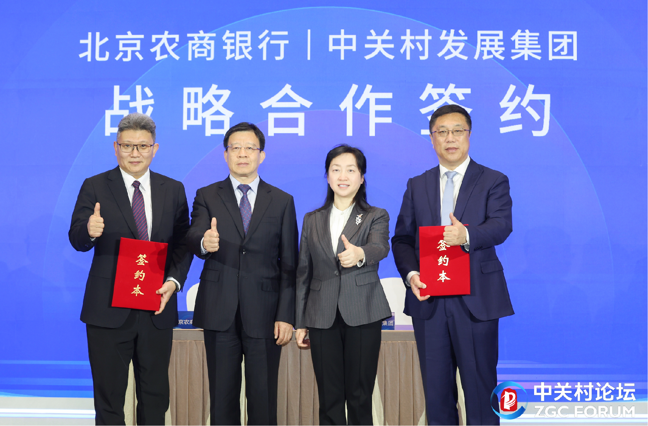 2026年3月25日,在2026中关村论坛年会期间,北京农商银行与中关村发展集团正式签署《战略合作协议》。北京农商银行党委书记白晓东、副行长刘薪屹,中关村发展集团党委书记、董事长李妍,副总经理贾一伟等双方领导出席并见证签约。此次战略合作的达成,标志着双方在服务国家创新驱动发展战略、推动科技与产业深度融合方面迈出关键一步。
