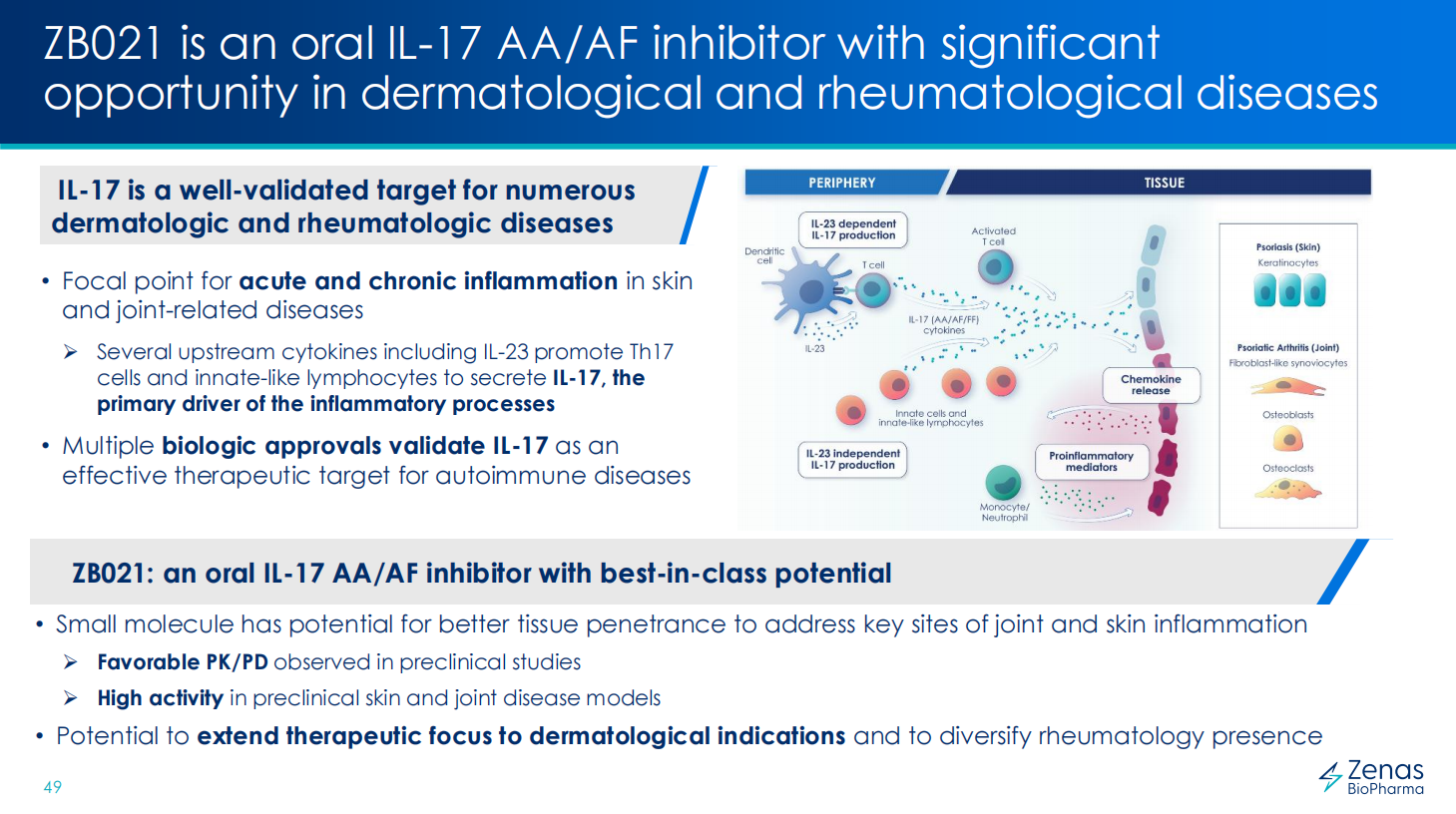 此次合作的价值,不仅局限于奥布替尼的适应症拓展。诺诚健华与Zenas的合作管线中,还包括一款新型口服IL-17AA/AF抑制剂,用于开发自身免疫和炎症性疾病。该药已经提交IND申请。