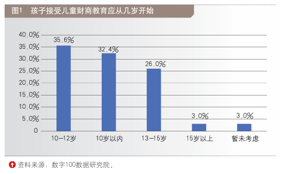 同时,在“孩子接受儿童财商教育应从几岁开始”的问题上,35.6%的受访者选择10-12岁,32.4%的人选择10岁以内,这反映出受访者对财商启蒙黄金期的模糊认知。除此之外,选择13-15岁、15岁以上的受访者比例分别为26.0%和3.0%。