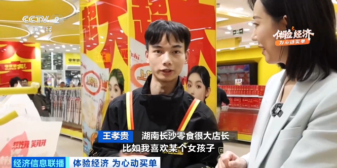 湖南长沙零食很大店长 王孝贵:我们提供的主要是一个新颖的惊喜的情绪。把每个顾客来逛门店的情绪放大,把快乐也放大。
