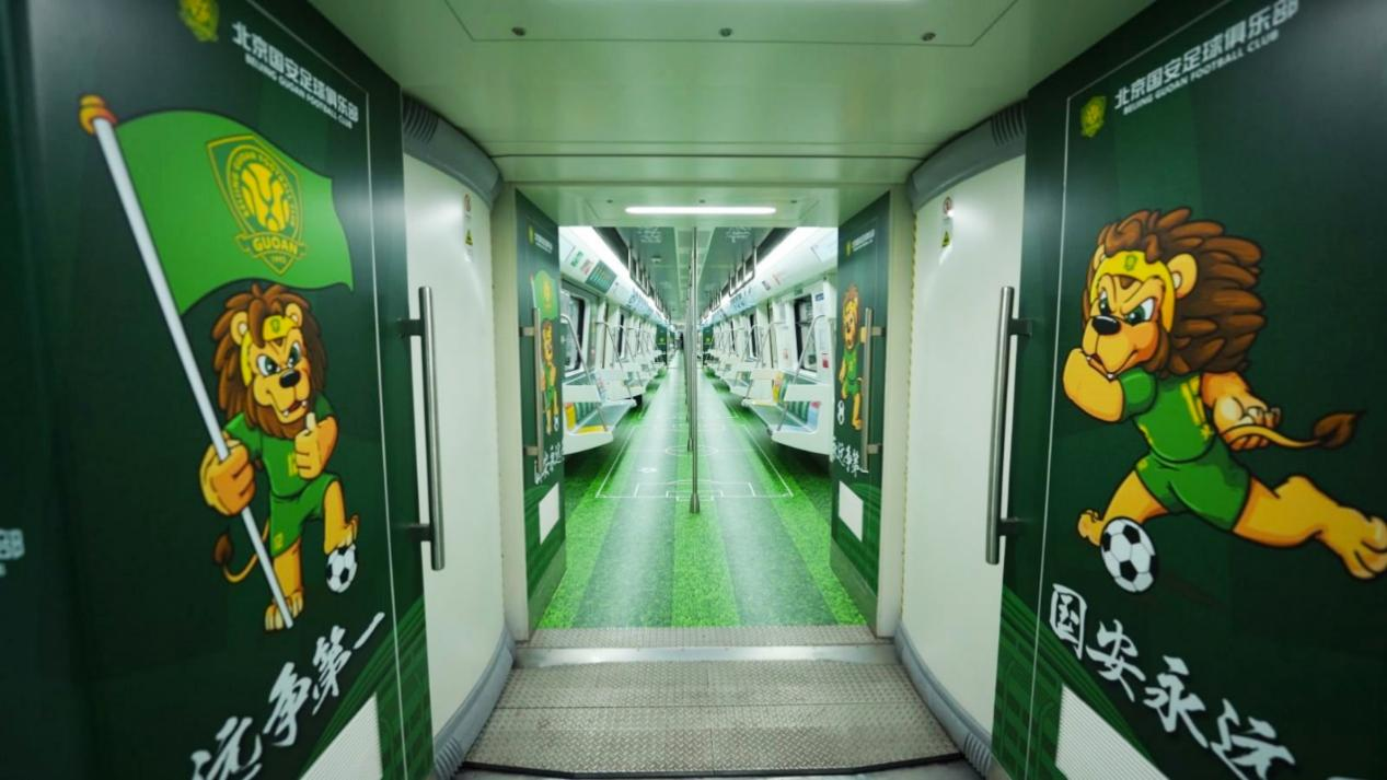 工人体育场站以绿茵元素、国安球员形象进行全域包装,同期上线的3号线主题列车化身 “移动主场”,强化城市主场认知。
