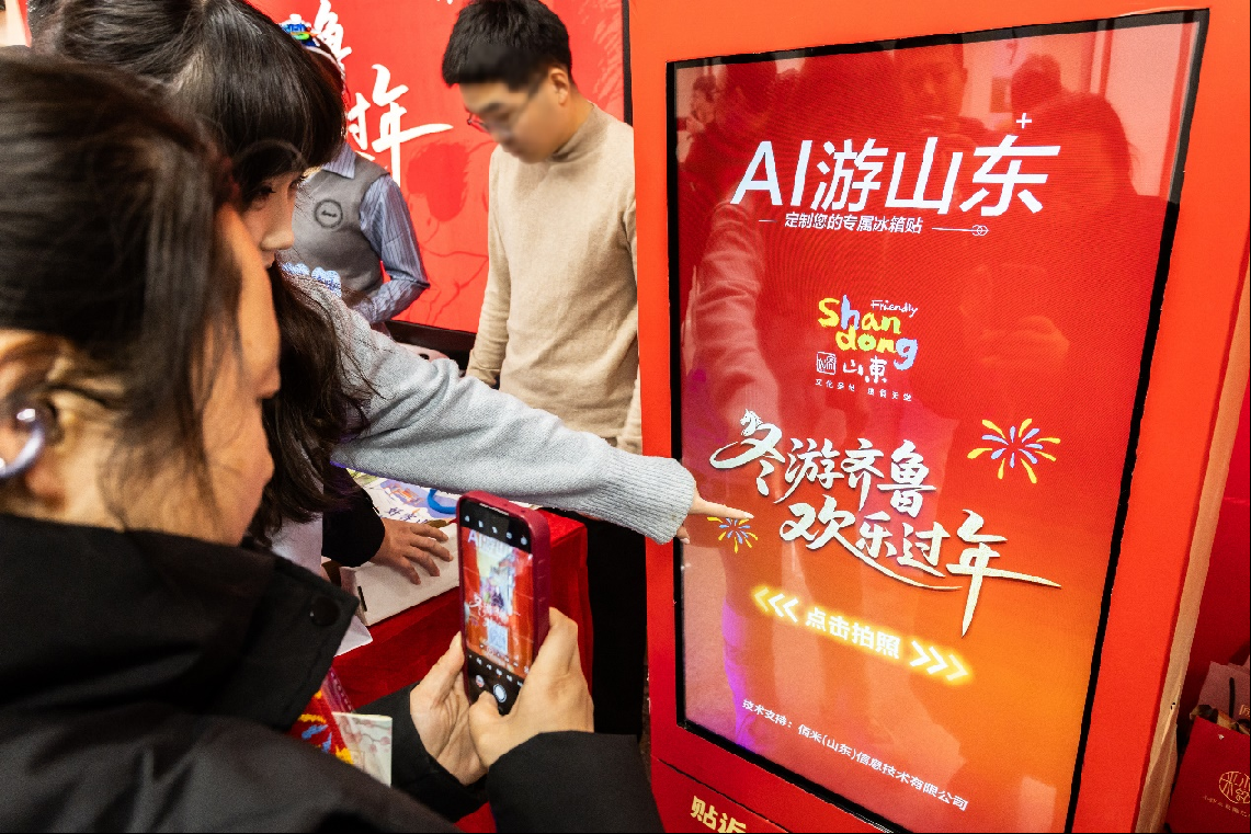 山东文旅朝阳门站落地 AI 互动与 NFC 盲盒机,乘客可拍照生成定制冰箱贴、手机一碰抽取旅行优惠券,兼具纪念性与实用性,吸引大量乘客打卡分享,带动社媒话题曝光突破7900万次。