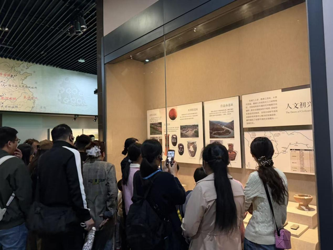 而在成都博物馆,亲子家庭同样是游览的主要人群。春假期间,成都博物馆特别推出了一系列社教活动,吸引了不少家长带着孩子前来体验。